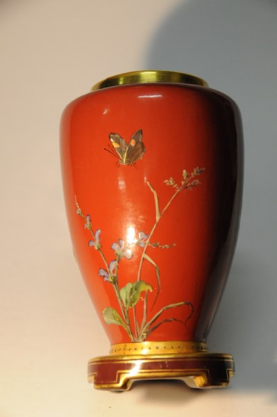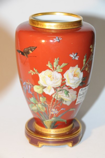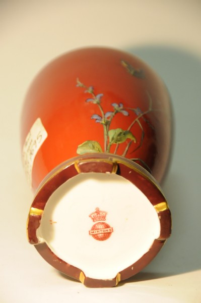 A Victorian hand painted Mintons Vase dated 1873 decorated with flowers butterfly’s and bees.