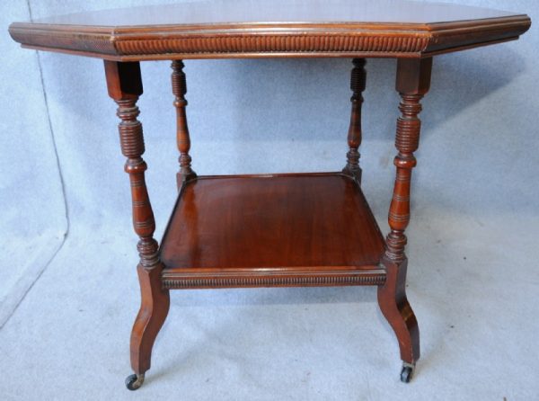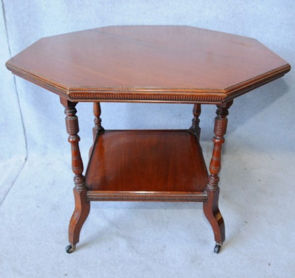 A late Victorian walnut octagonal centre table.