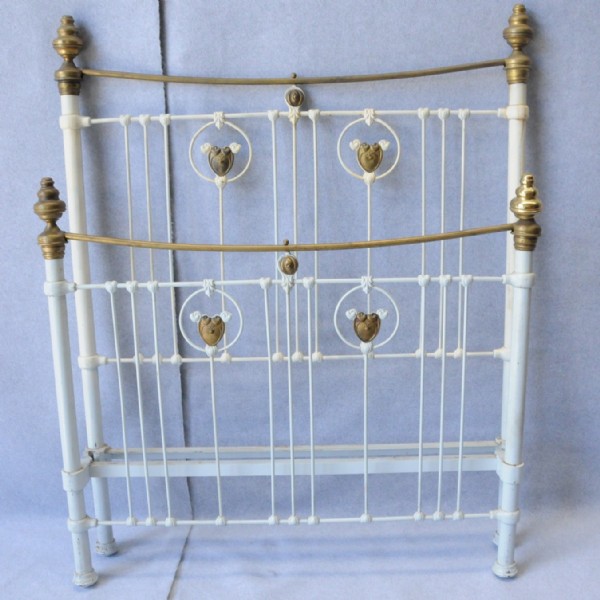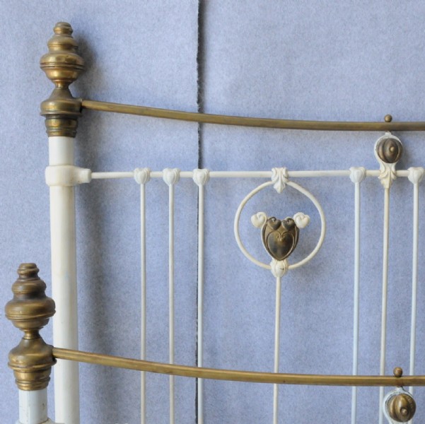 A white cast iron and brass Art Nouveau double bed with tulip design.