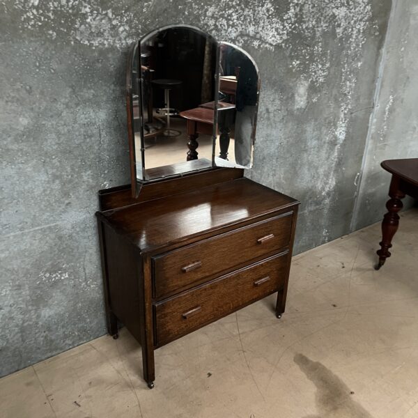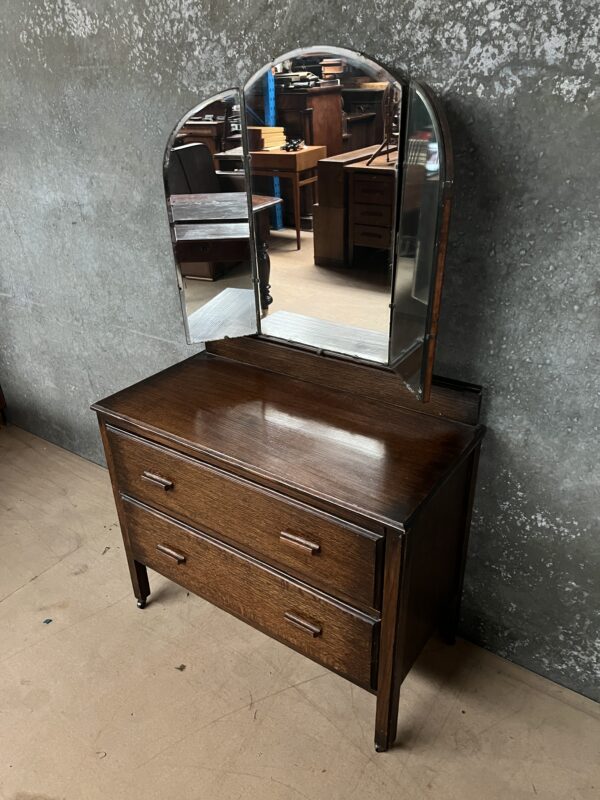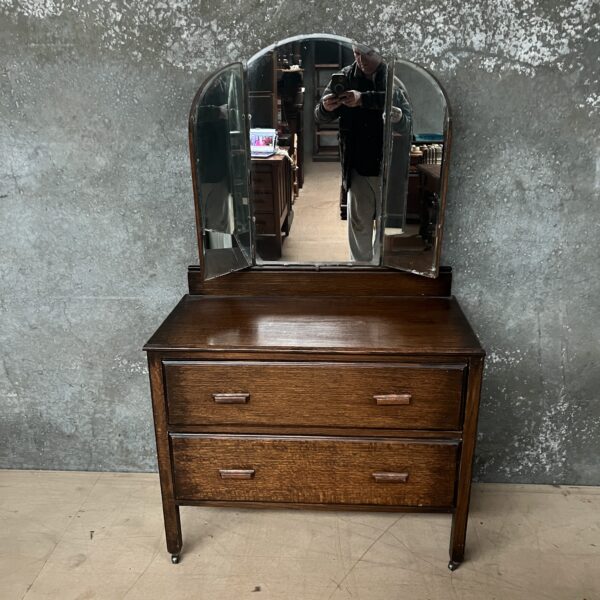 An Art Deco English oak dressing chest with adjustable mirrors