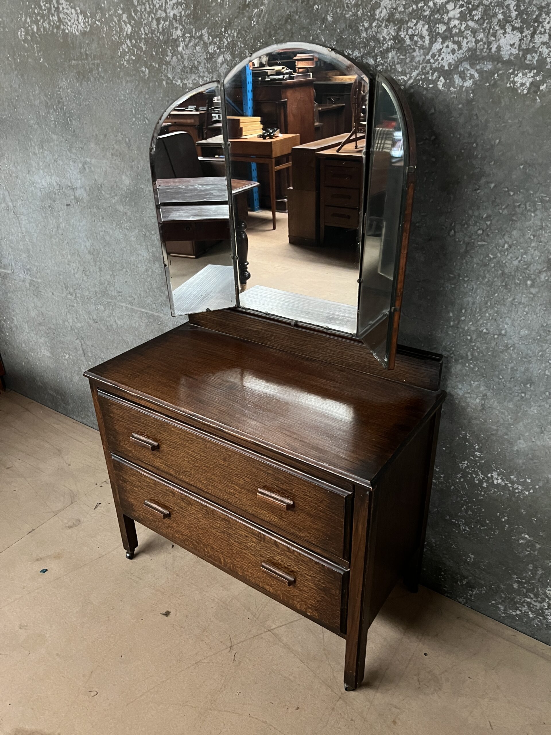 An Art Deco English oak dressing chest