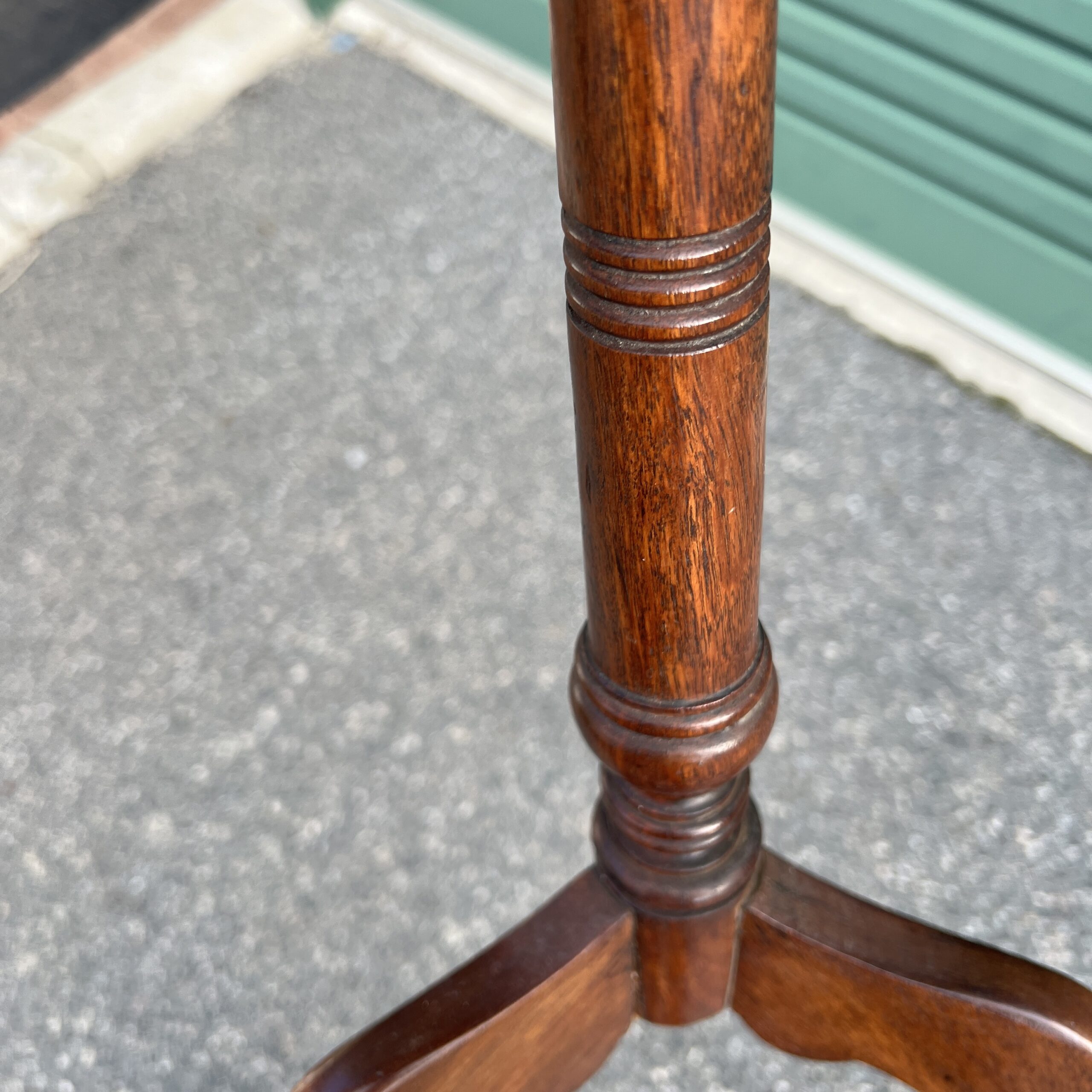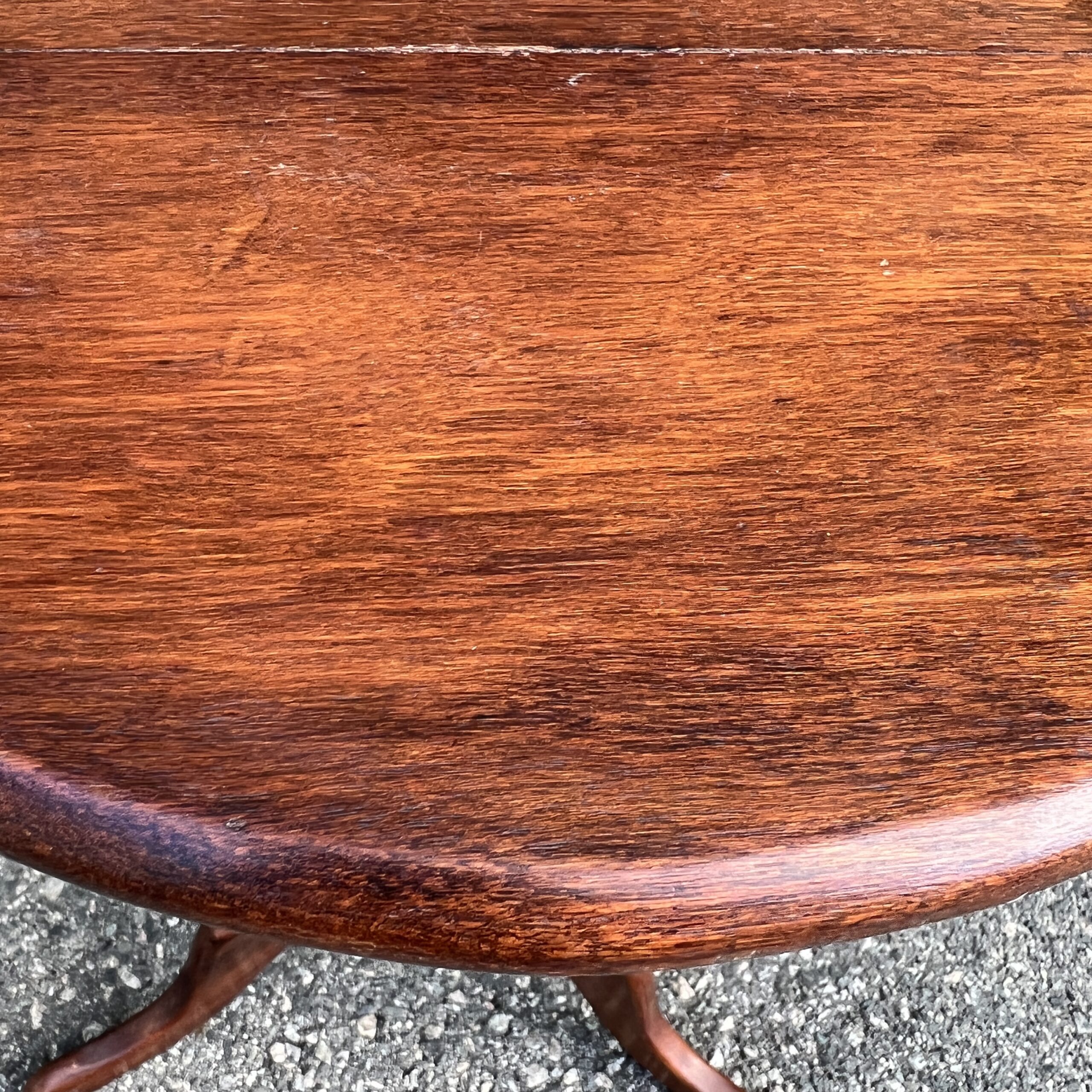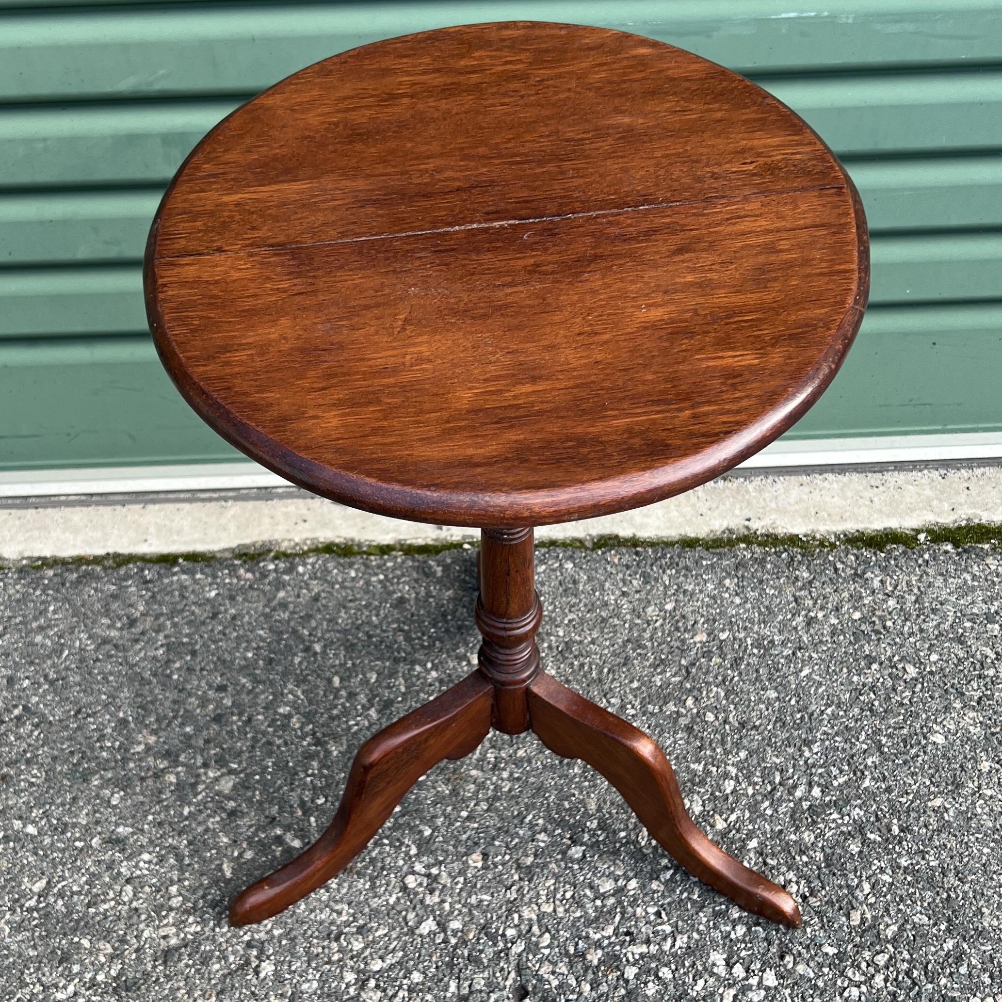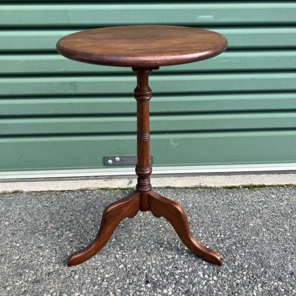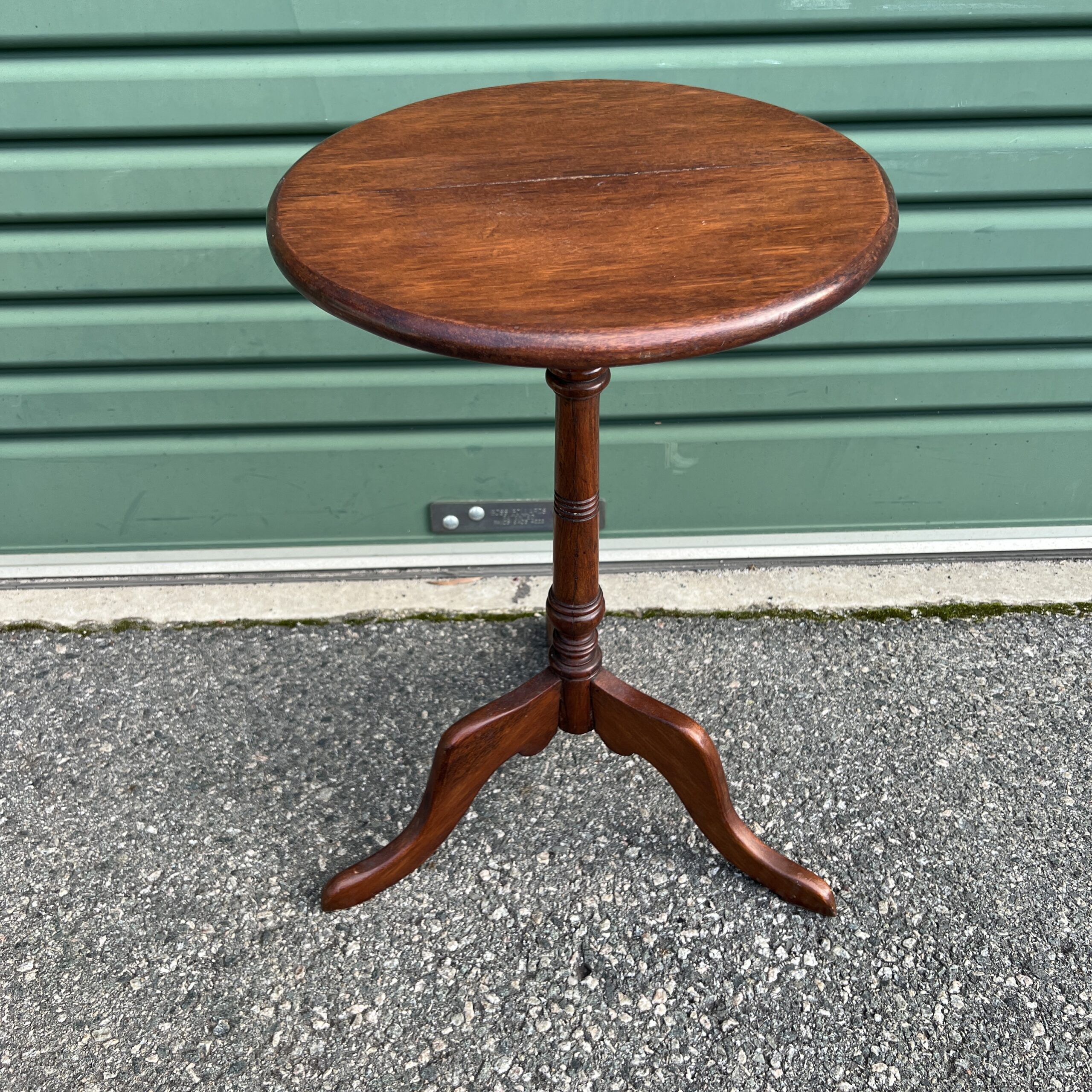 An Australian Blackwood circular wine table with a turned support and three out swept legs. $495 restored