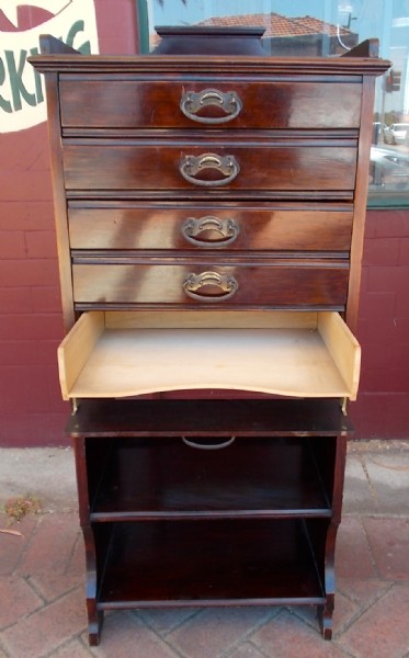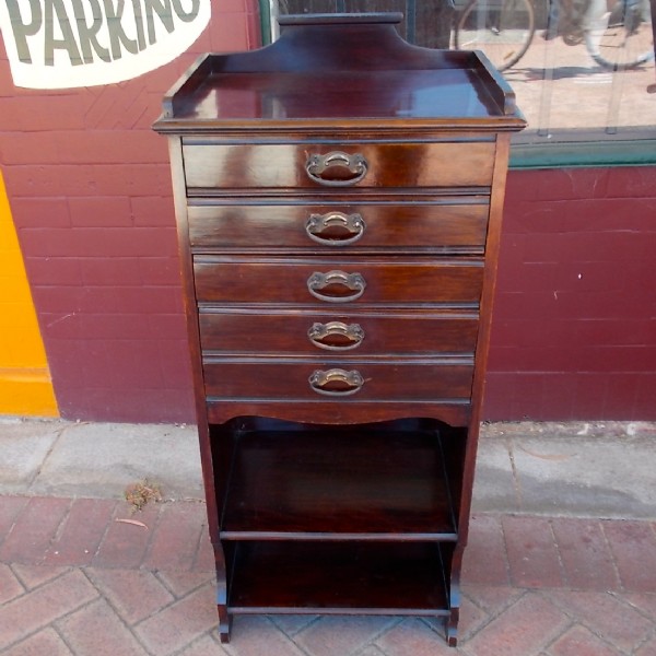 Home » An Edwardian walnut five drawer and two shelf music cabinet