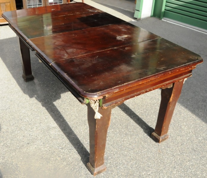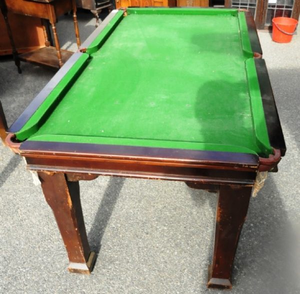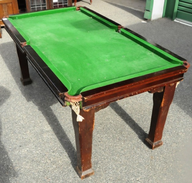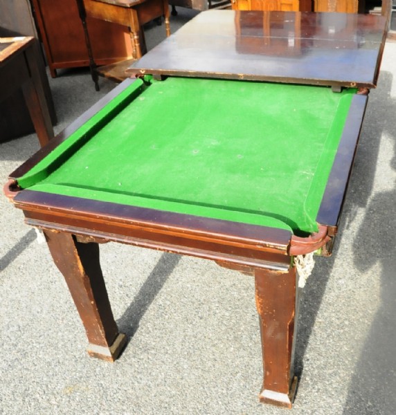 The table can be raised to play snooker and lowered to dine. The four leaf top is removable to play snooker.