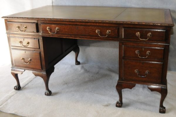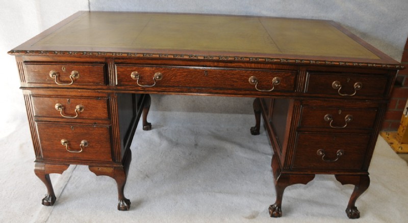 An oak twin pedestal desk. Size: high x wide x cm deep.
