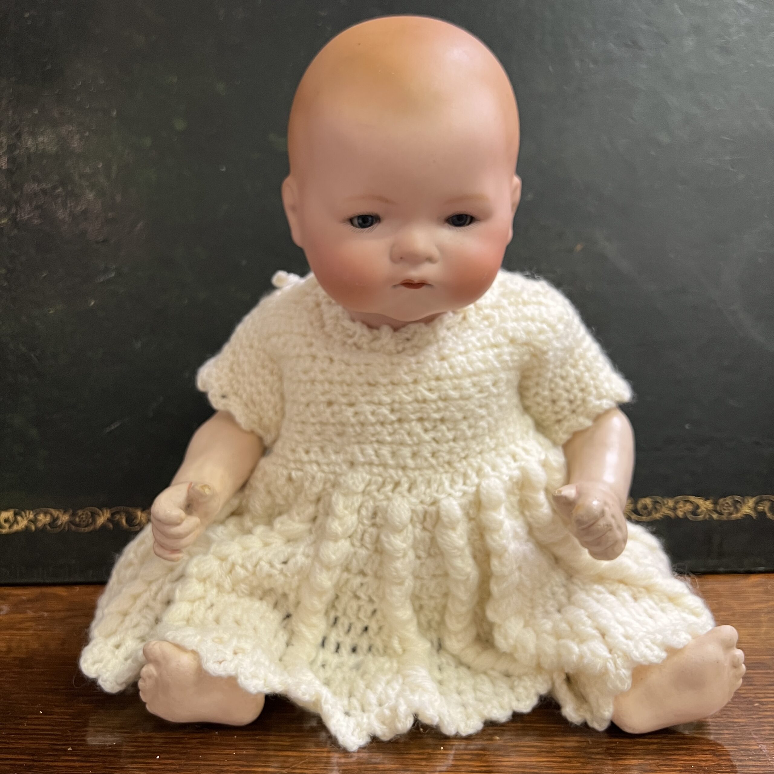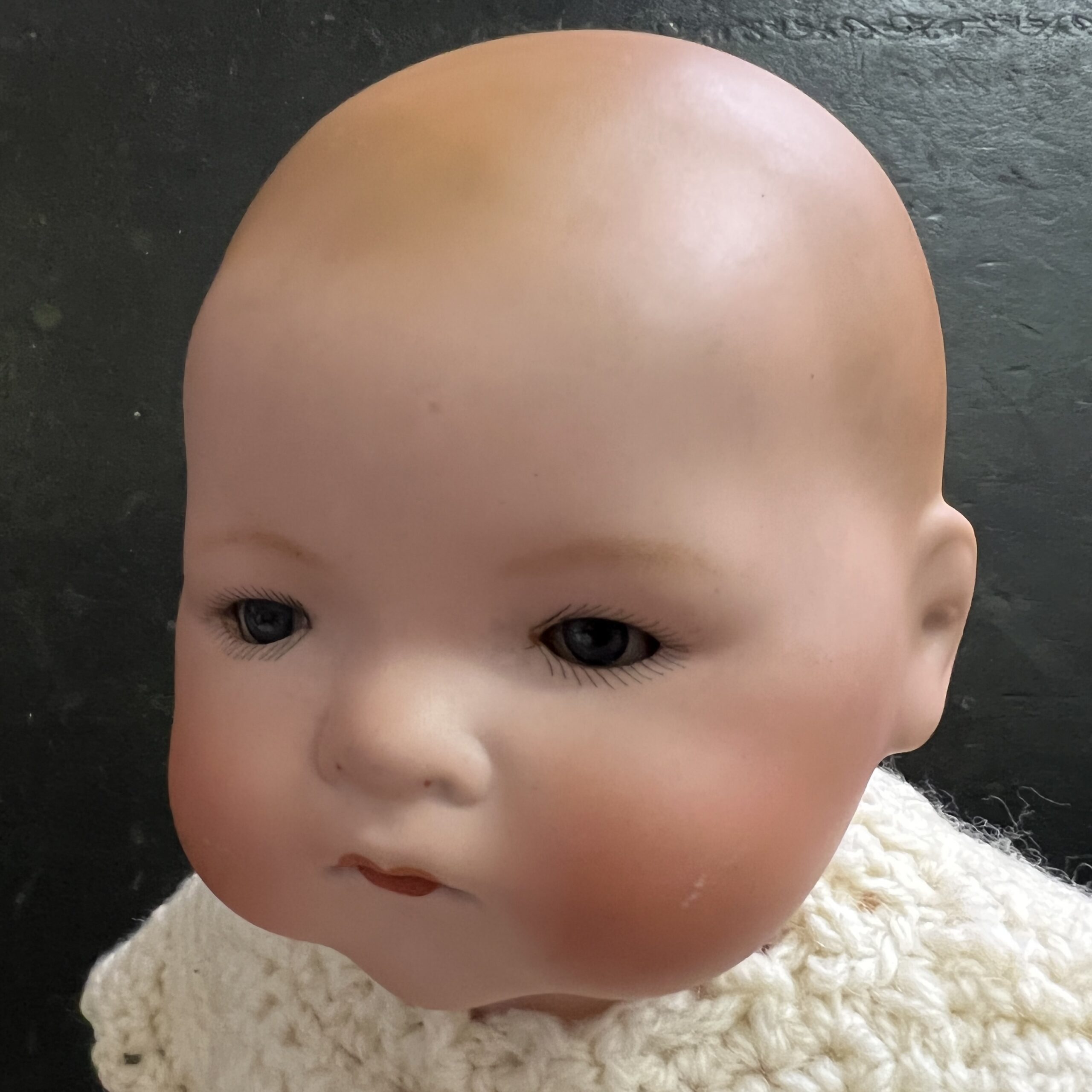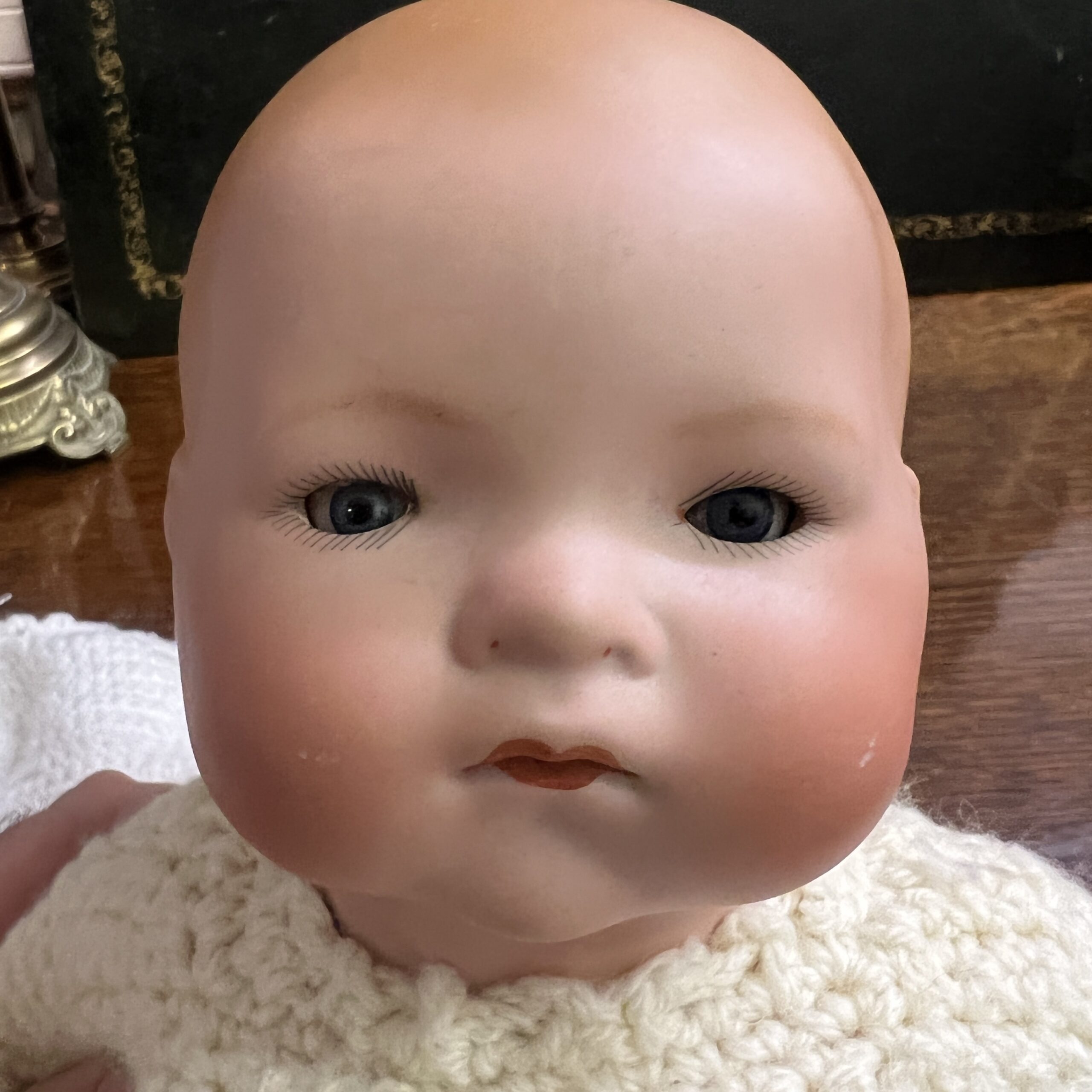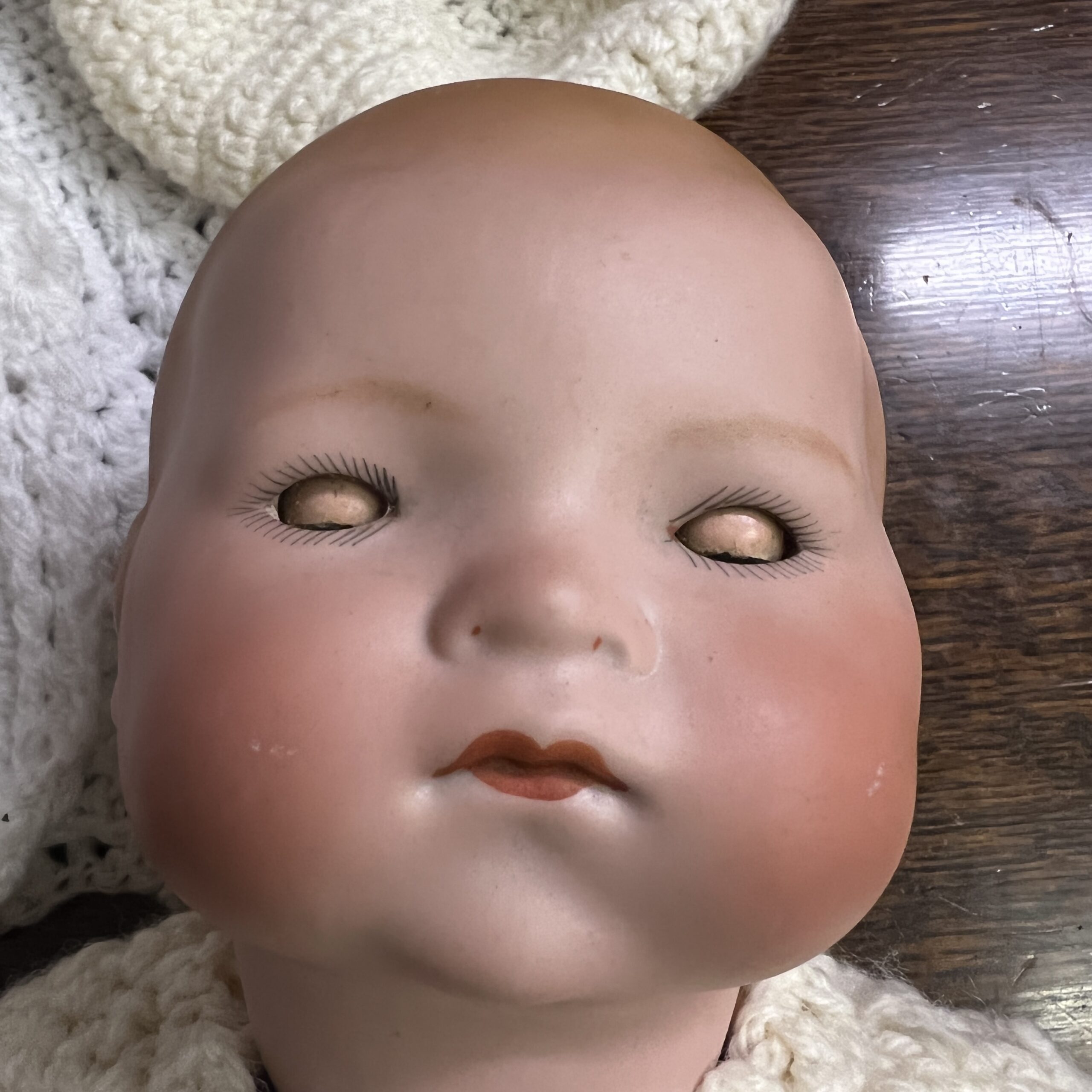 Armand Marseille bisque head Baby doll AM 341/4K Germany hand painted with moulded hair, closing blue eyes and articulated limbs, height 40cm