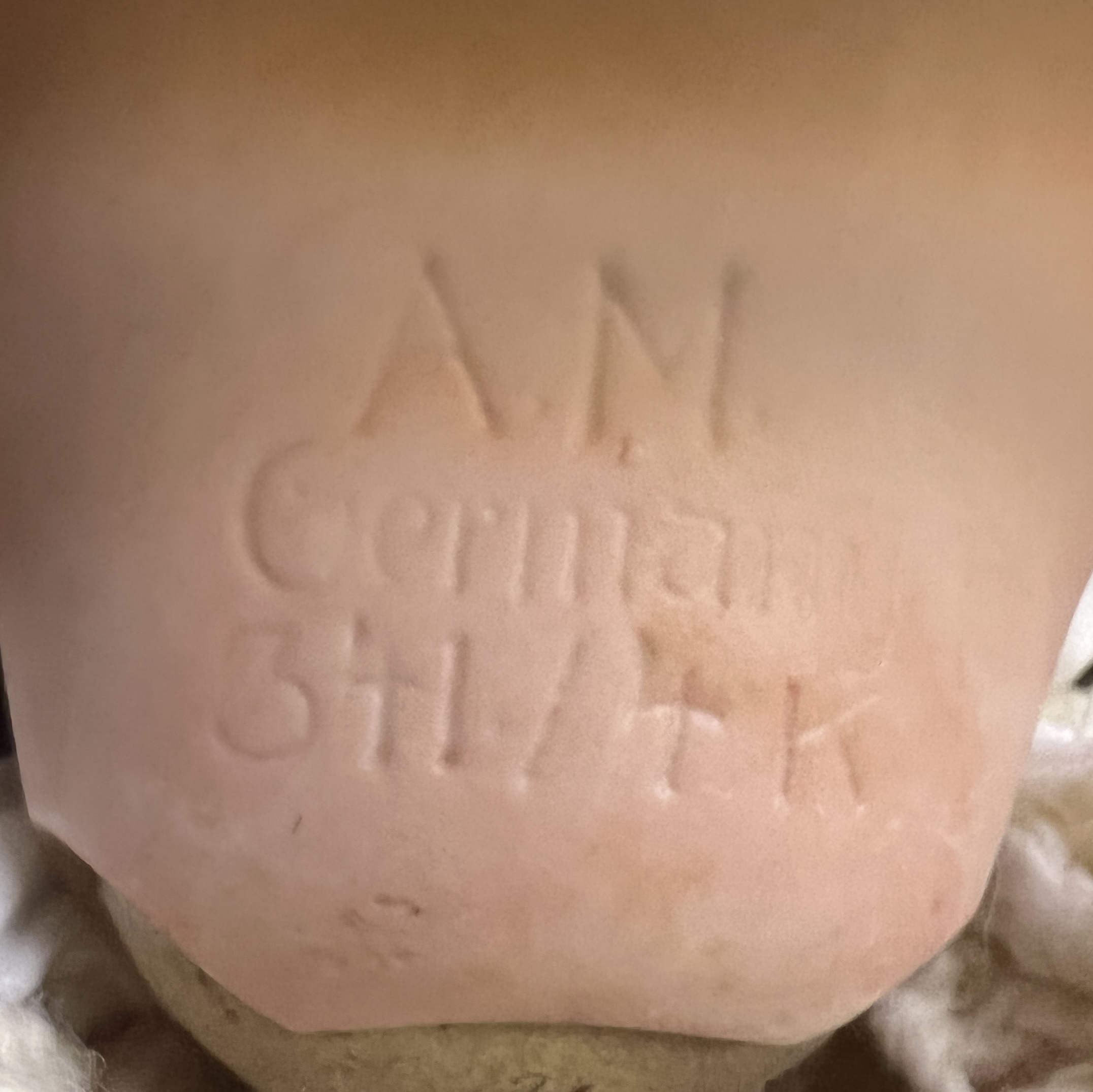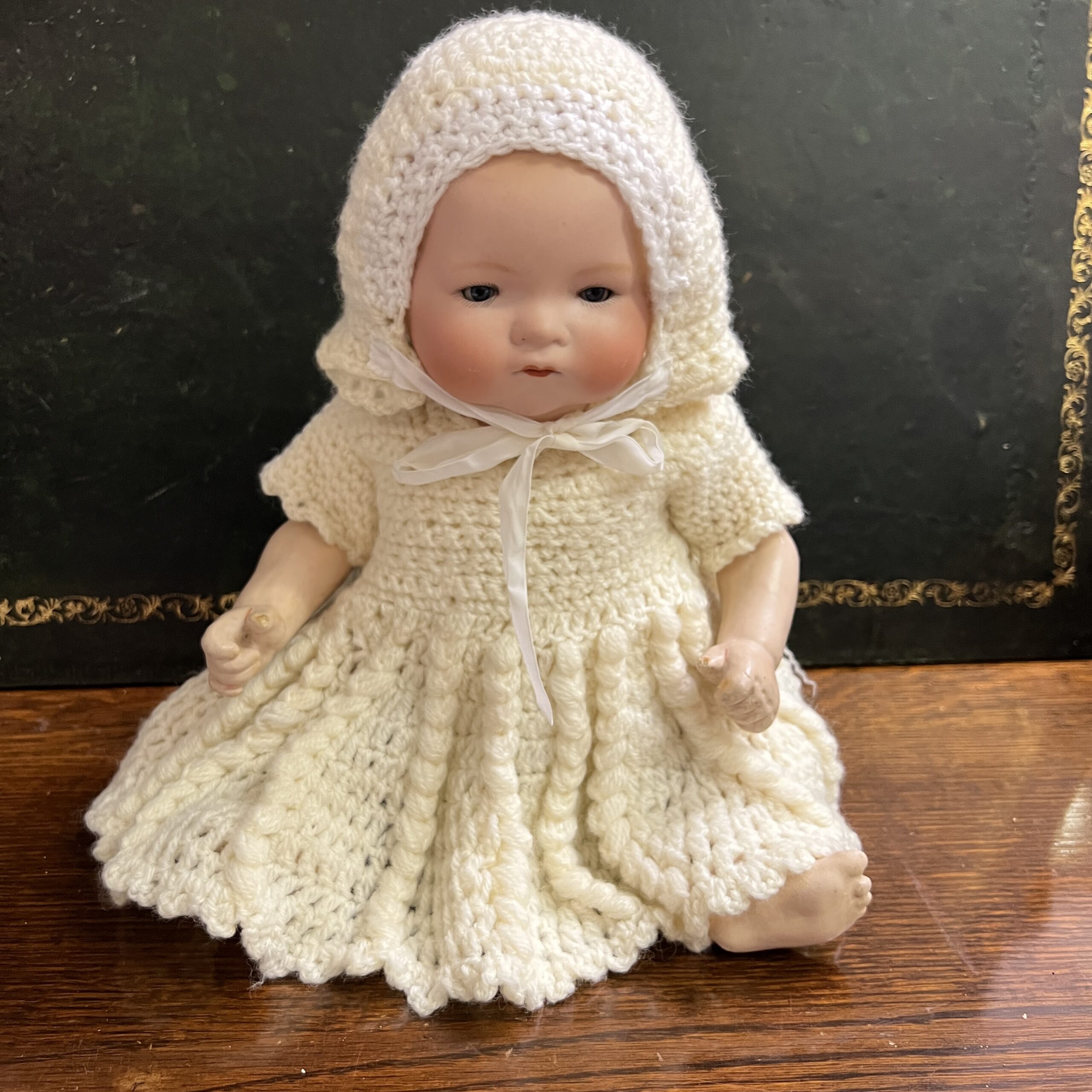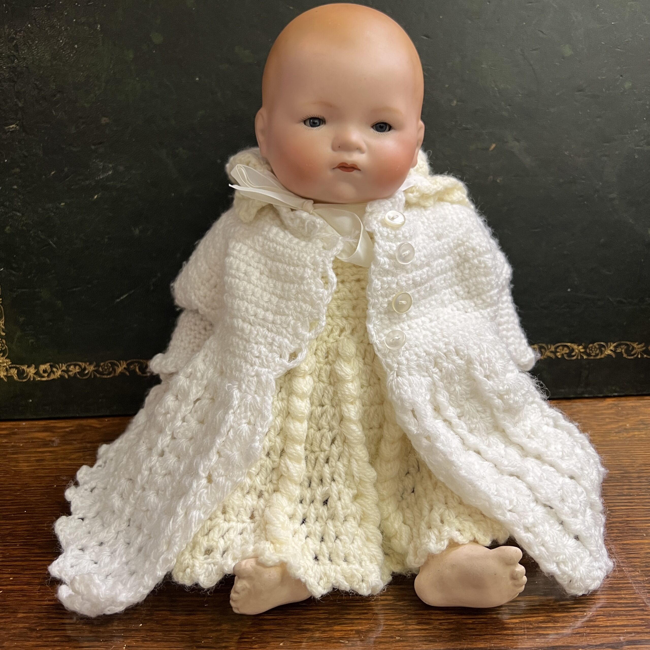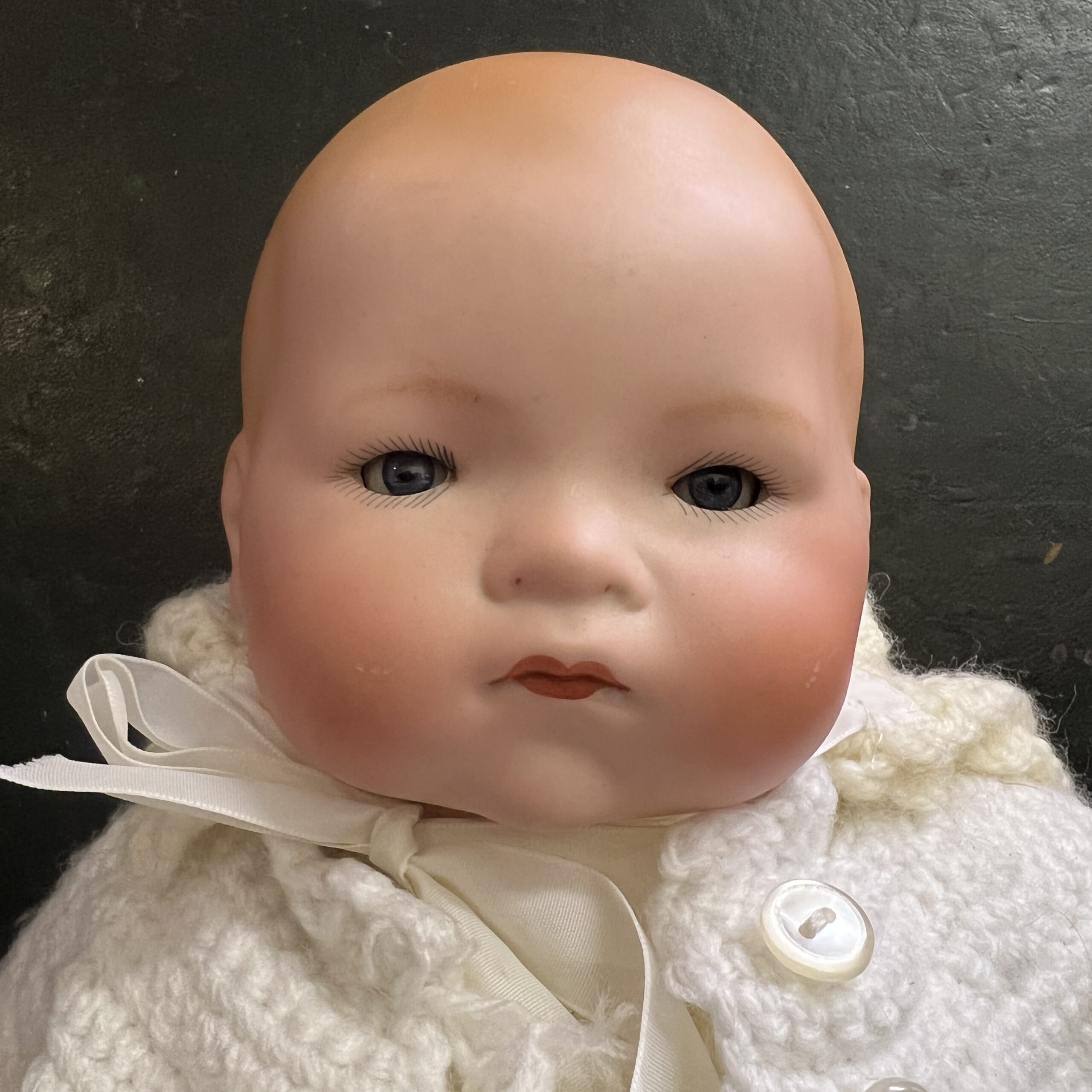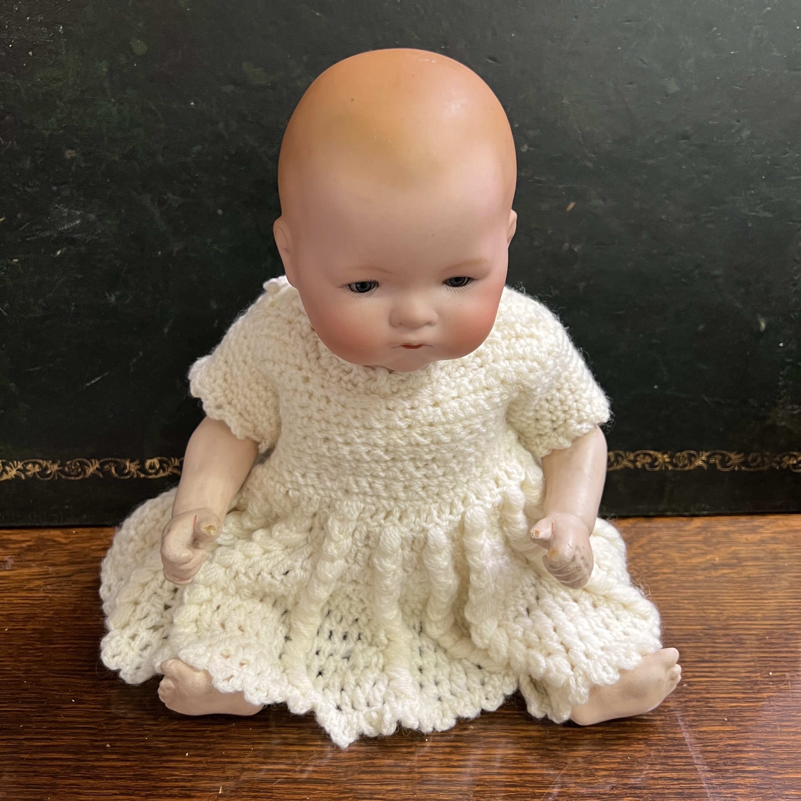 Armand Marseille bisque head Baby doll AM 341/4K Germany hand painted with moulded hair, closing blue eyes and articulated limbs, height 40cm