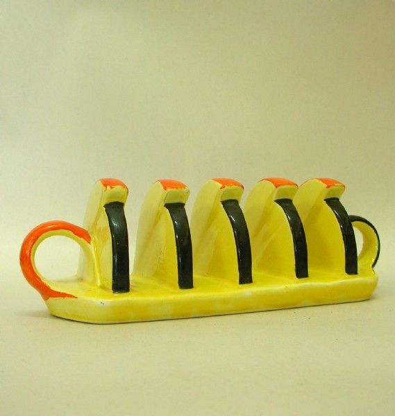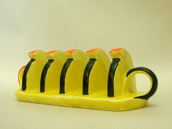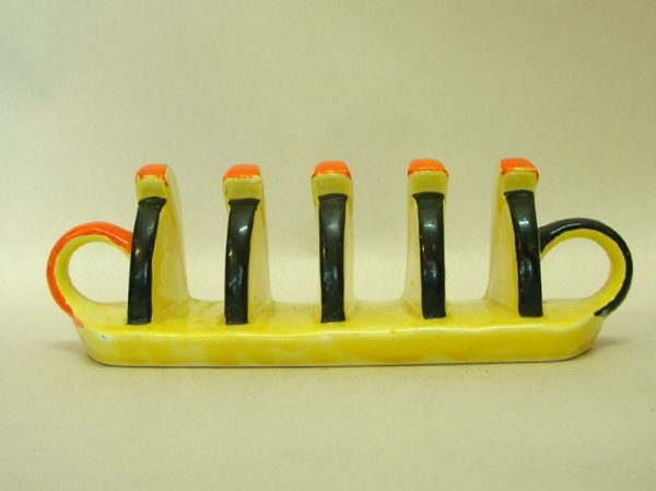 Art Deco hand painted Carlton Ware toast rack, in bold yellow, orange and black.