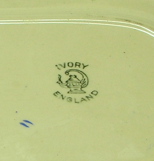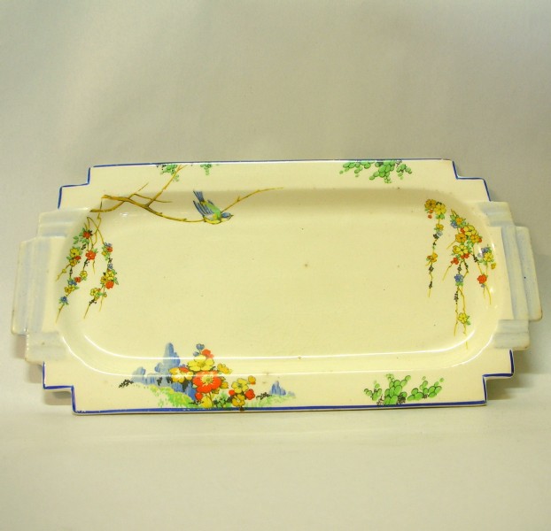 Art Deco Ivory Ware sandwich dish, decorated with flowers and a bird.