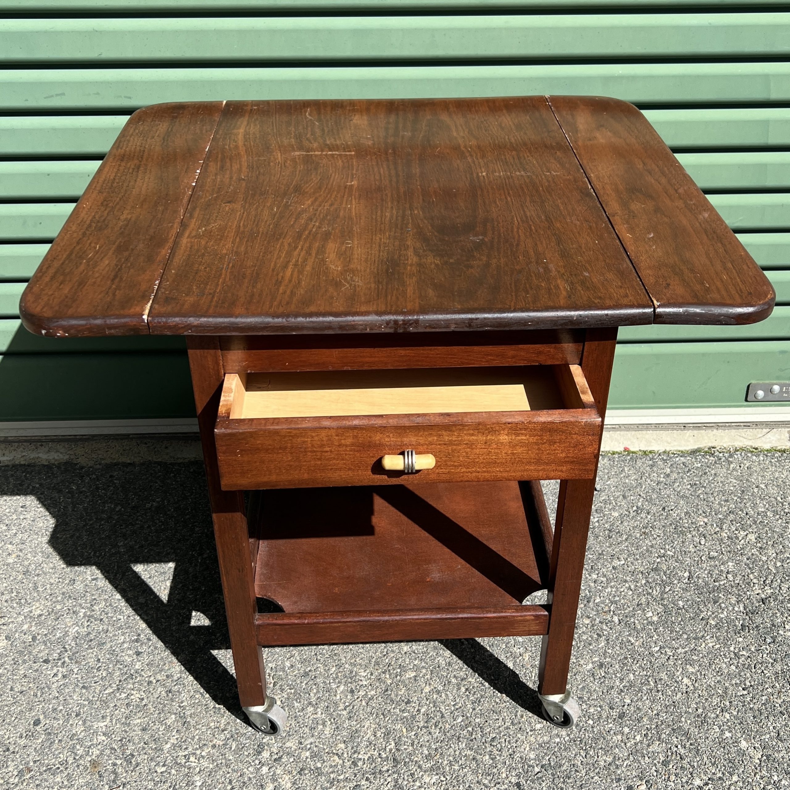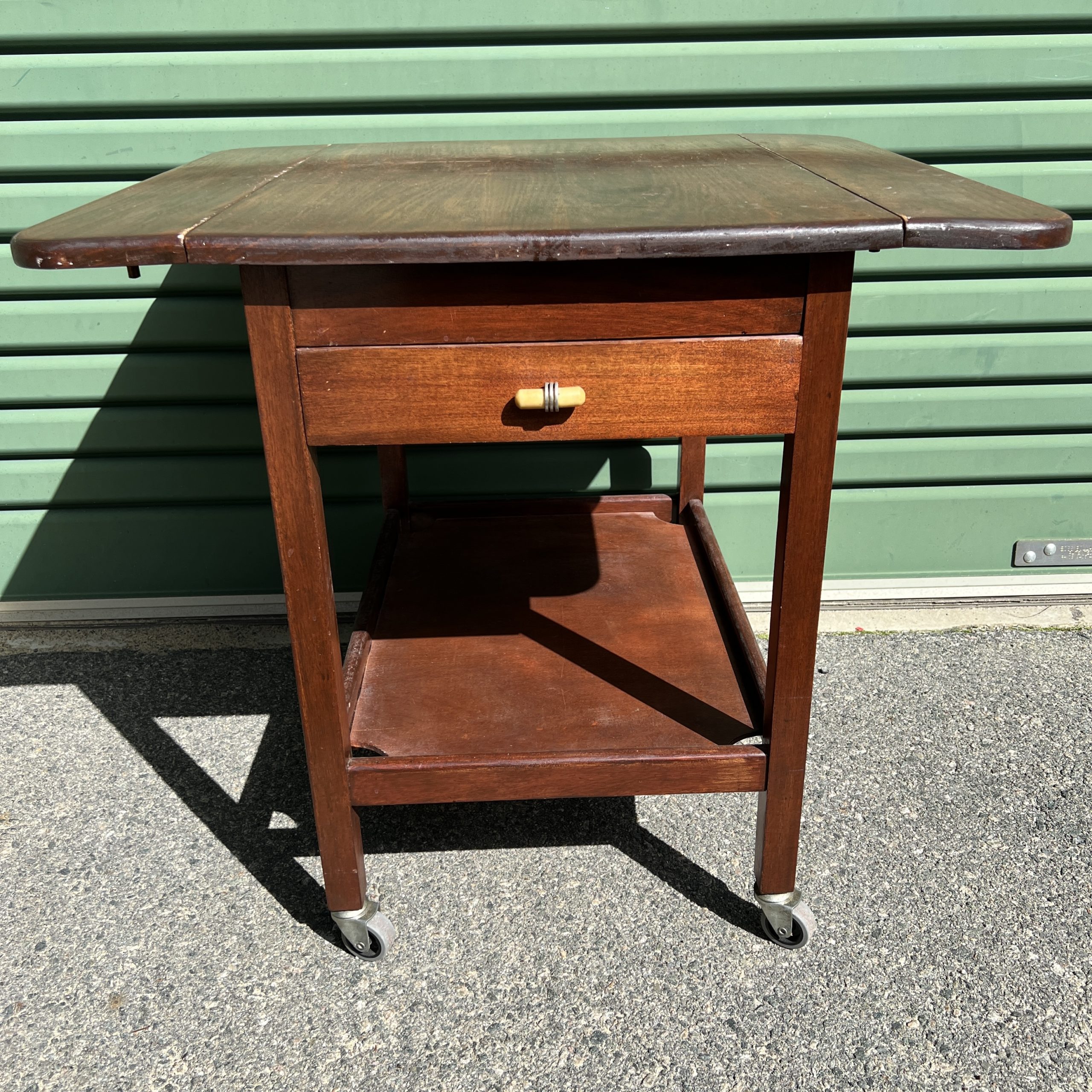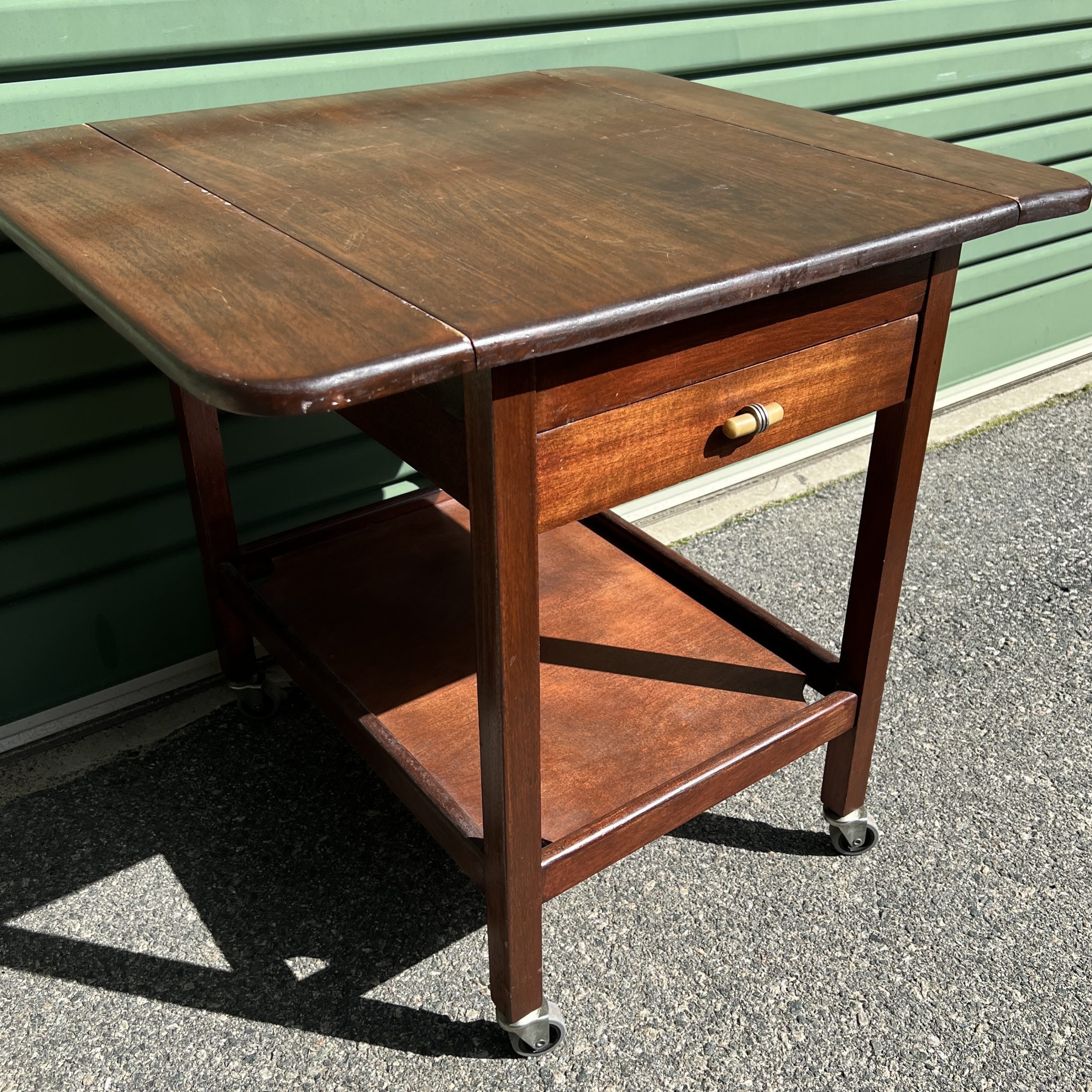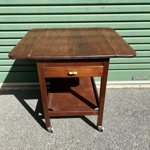 A 1930’s Tasmanian Art Deco two tier tea trolley with drop down sides