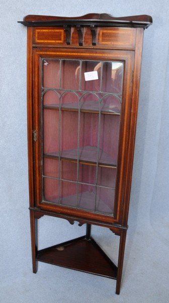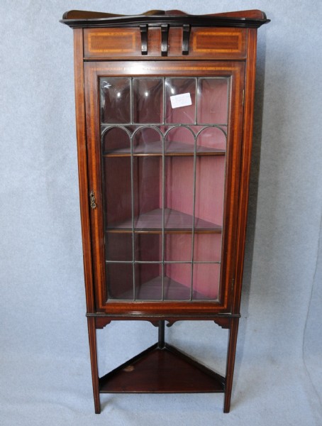 Arts and crafts mahogany corner display cabinet.