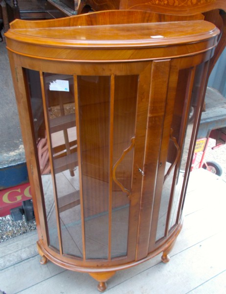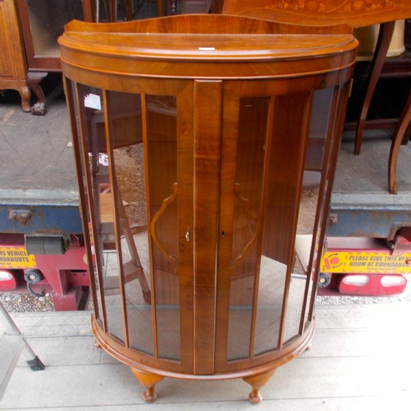 Mahogany semi circular two door display cabinet raised on Queen Anne feet