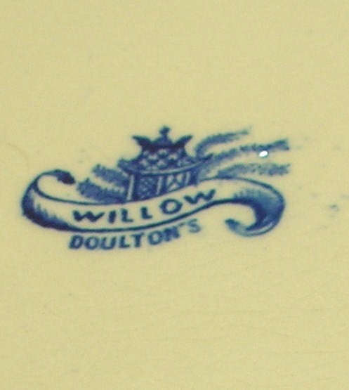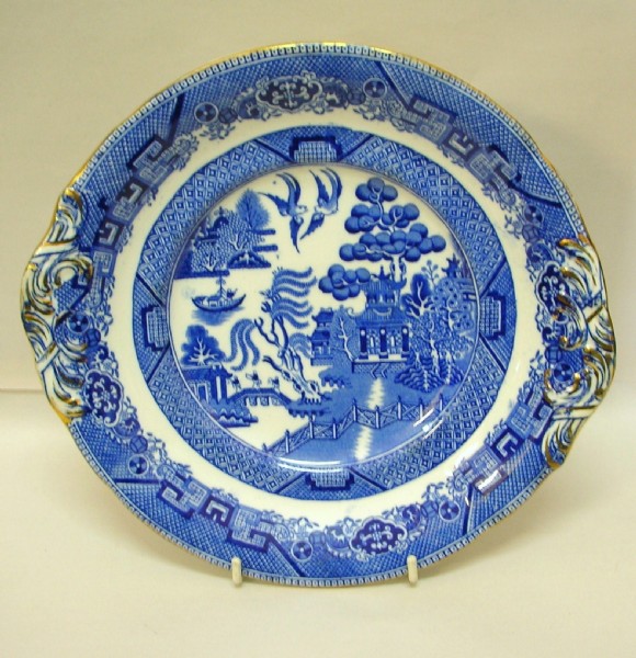 Doulton “Willow” pattern blue and white dish with gilt decoration.