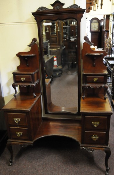 A late Victorian duchess dressing chest with a full length dressing mirror.