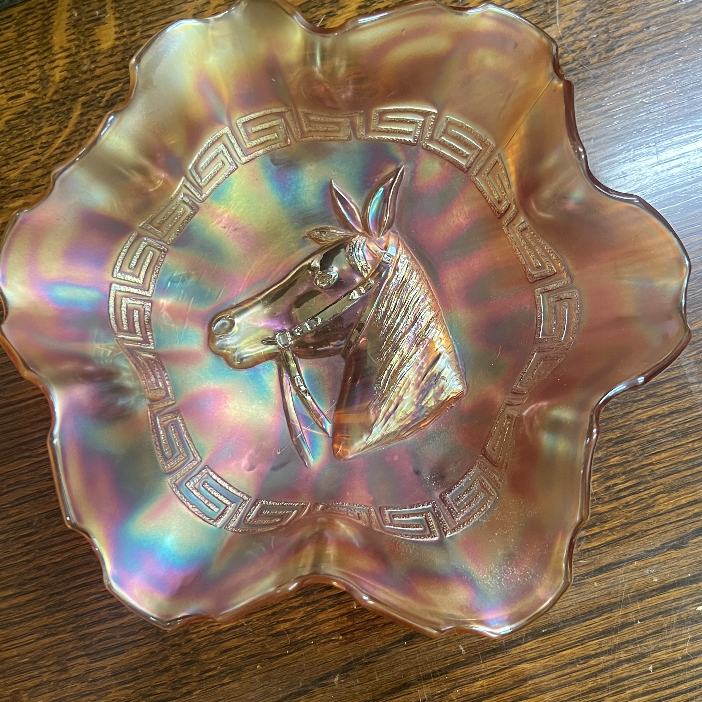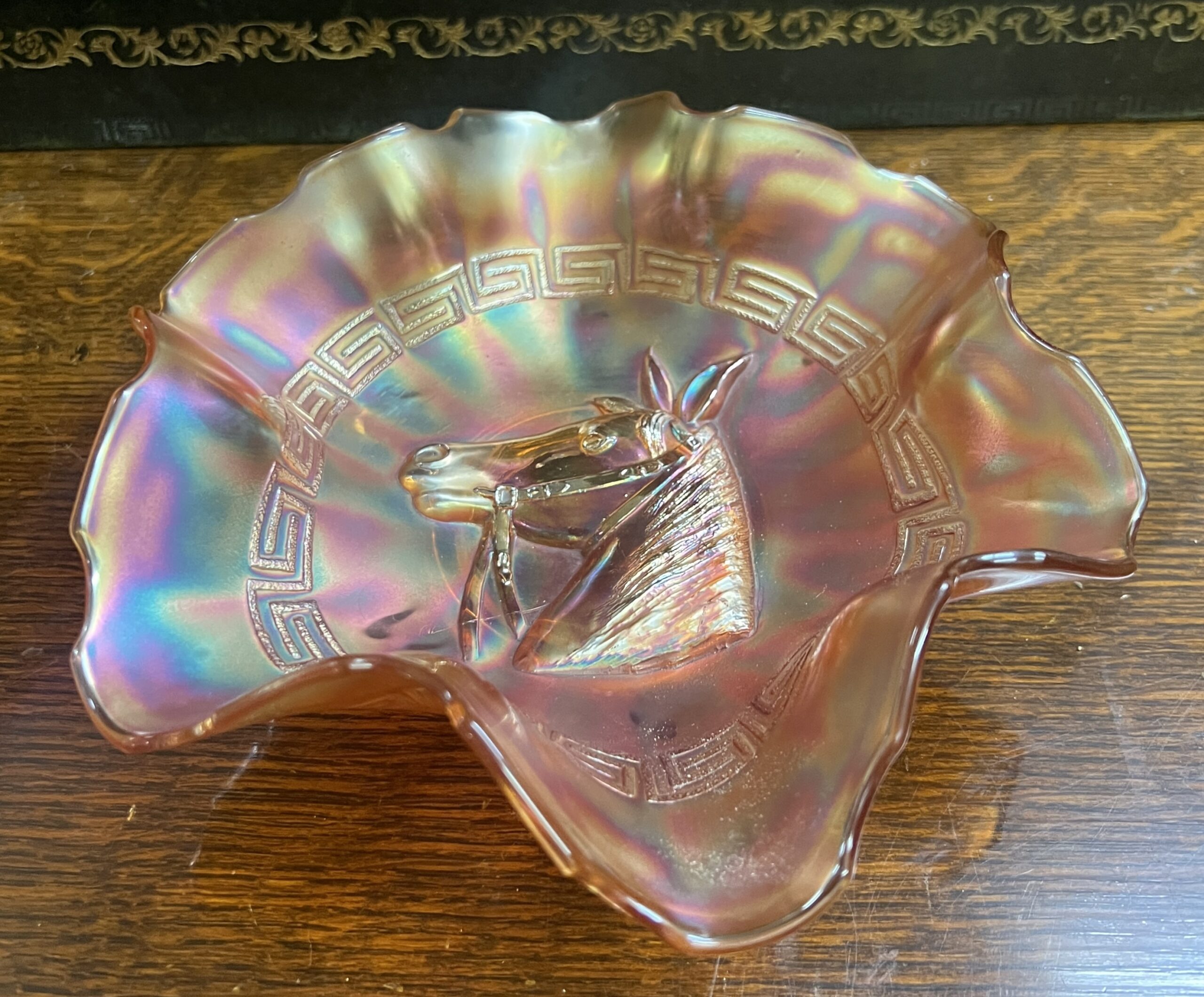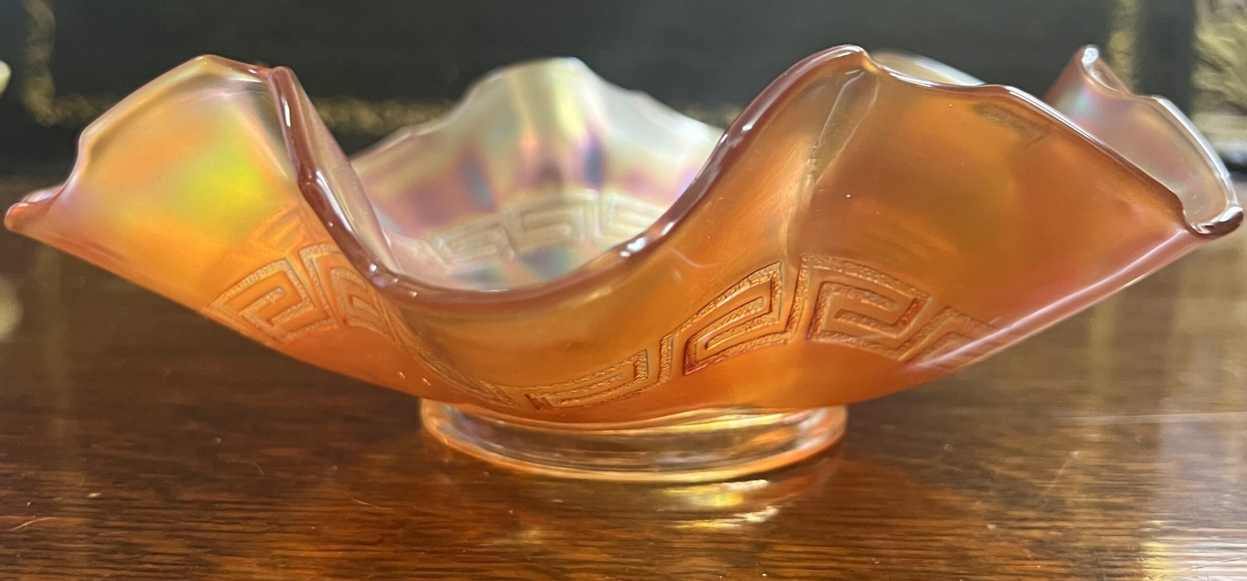 Dugan Pony Marigold c1930s with grecian key Carnival Glass Bowl 210 x 70