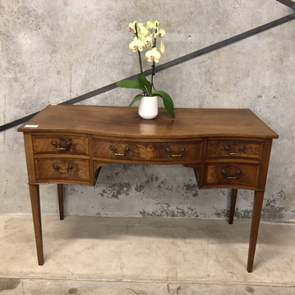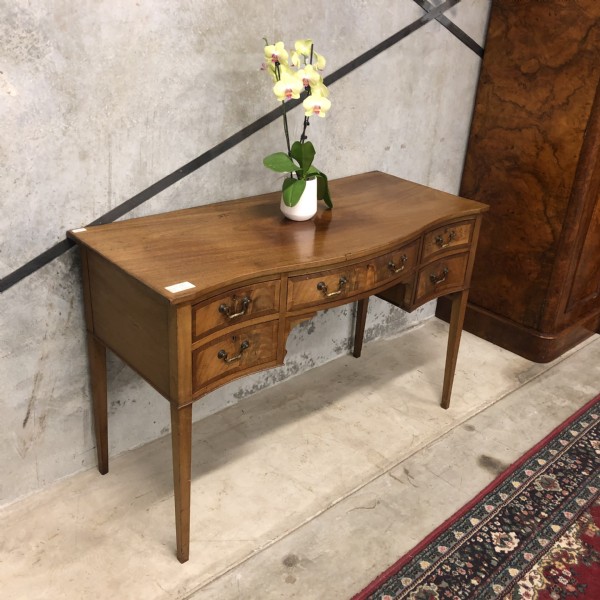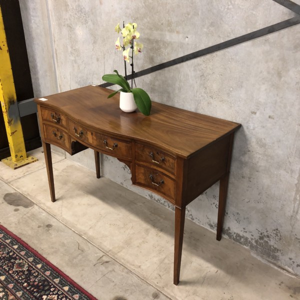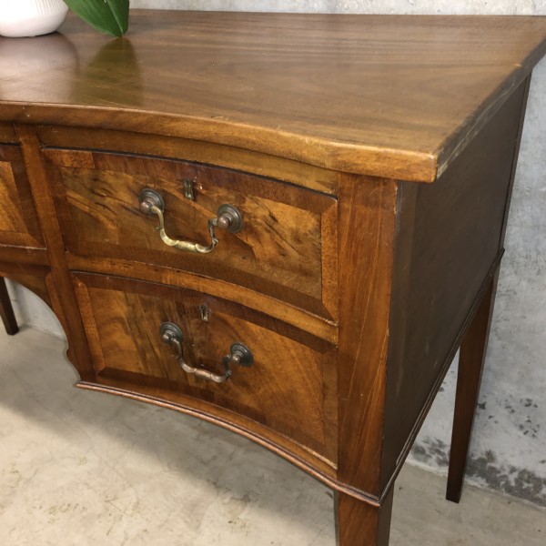 A Victorian Serpentine front Flame mahogany side table with five drawers