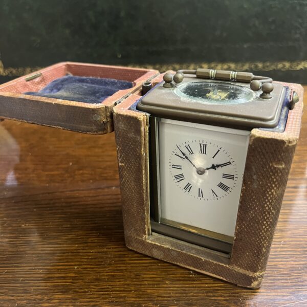 19th century French carriage clock in its original carry case in original untouched condition and in good working order