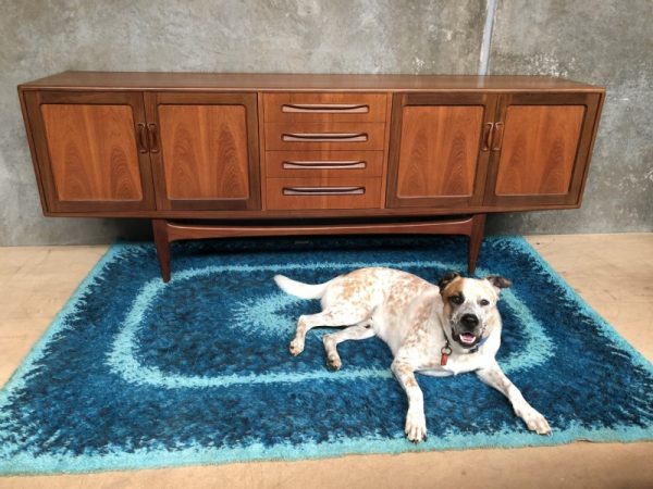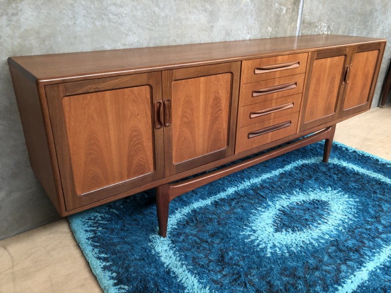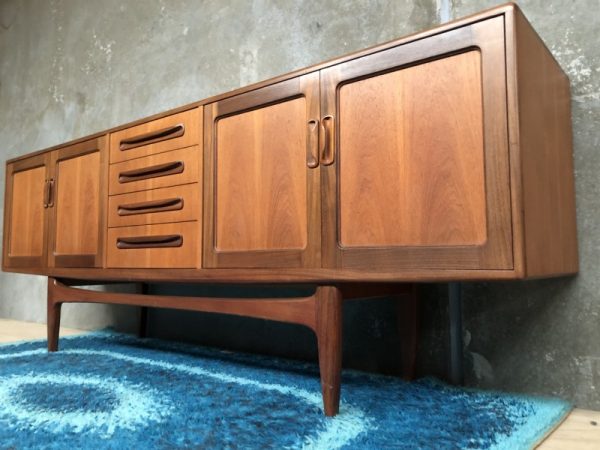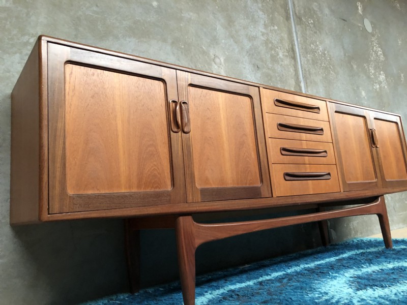 A mid century G Plan long Fresco teak long sideboard in great vintage condition with the normal faded to a nice blond colour look. The restored price is for those who wish a newly Danish oiled look which is a little darker finish and looks the same as the day it was first made.