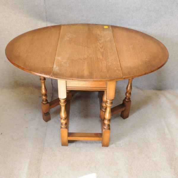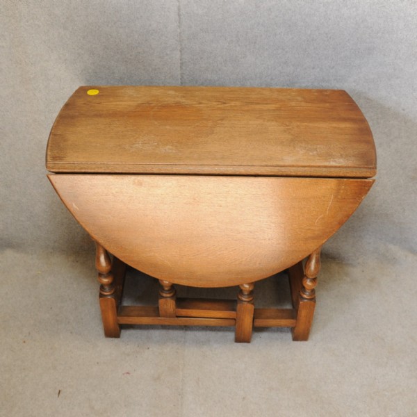 A small gate leg coffee table raised on turned legs. Size: high x wide x cm deep.