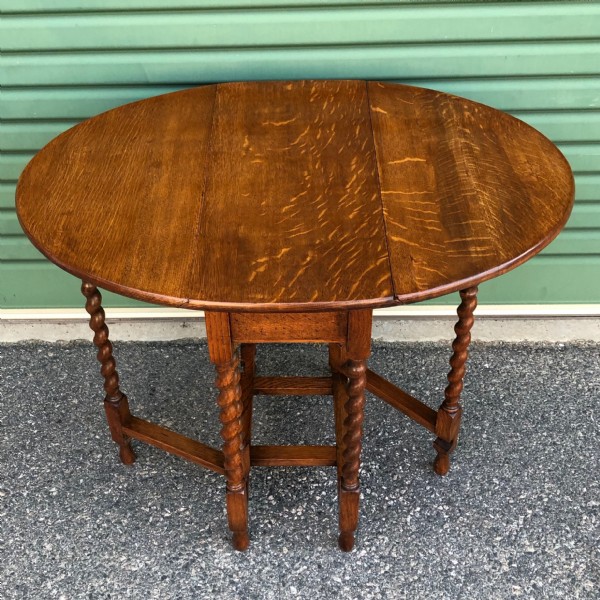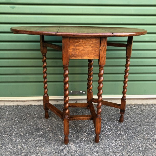 An English oak gateleg table with Jacobean twist (barley twist) legs.
