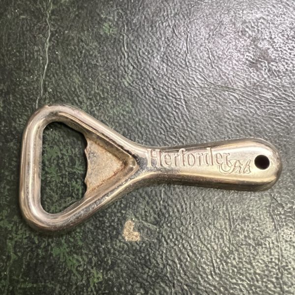 Herforder Pils chrome church key bottle opener, a German brewery in Hiddenhausen-Sundern founded in 1878. 80mm