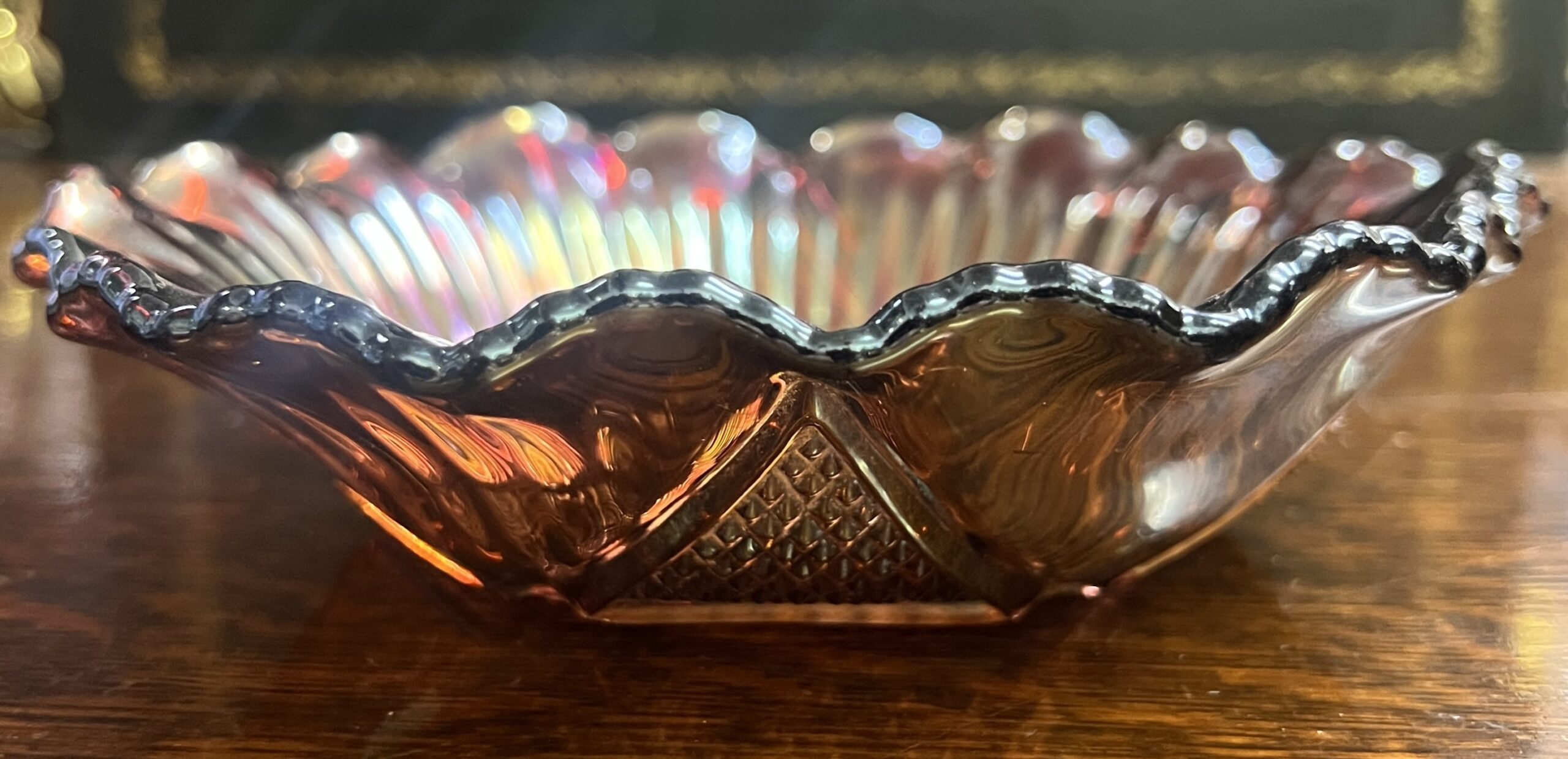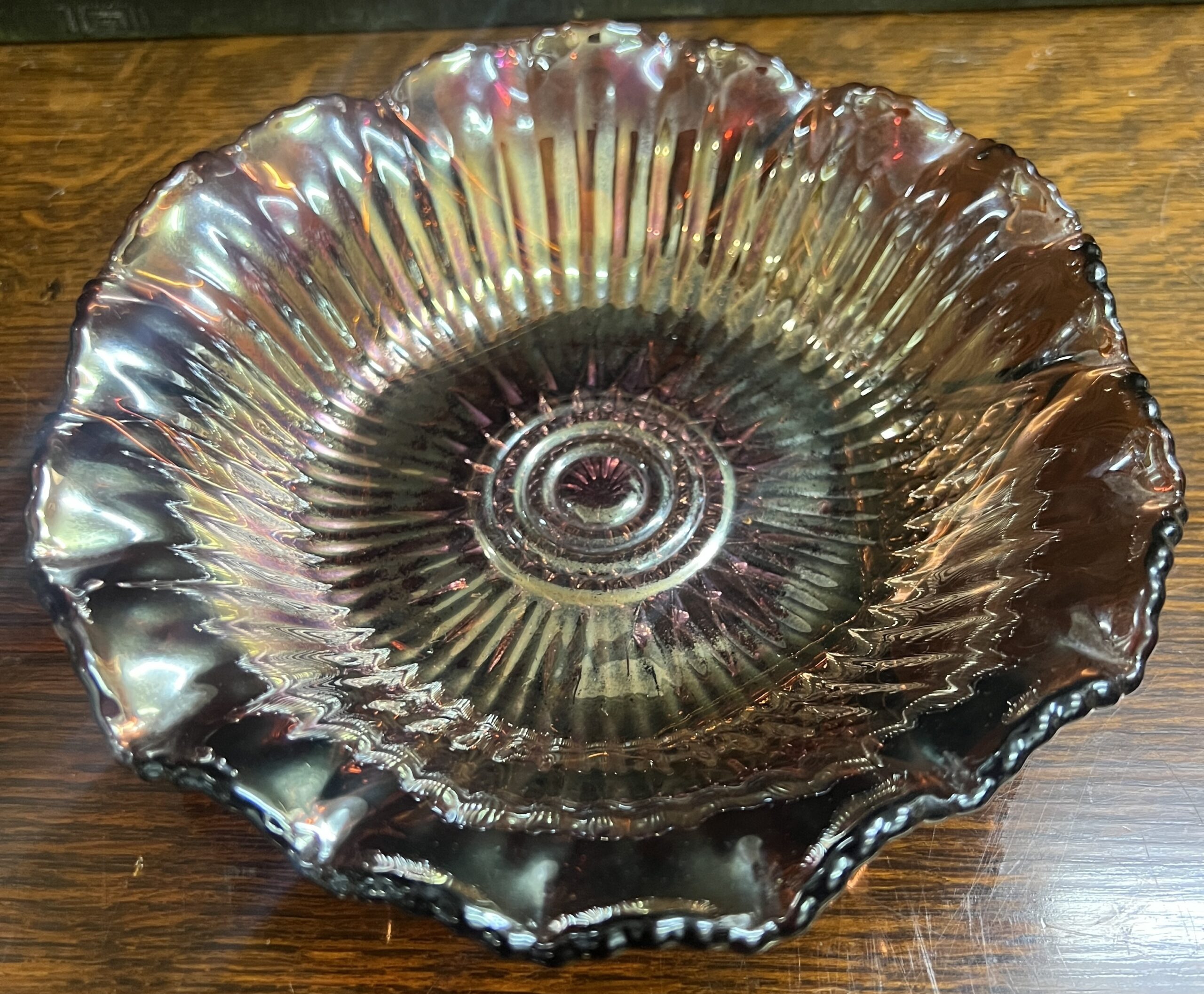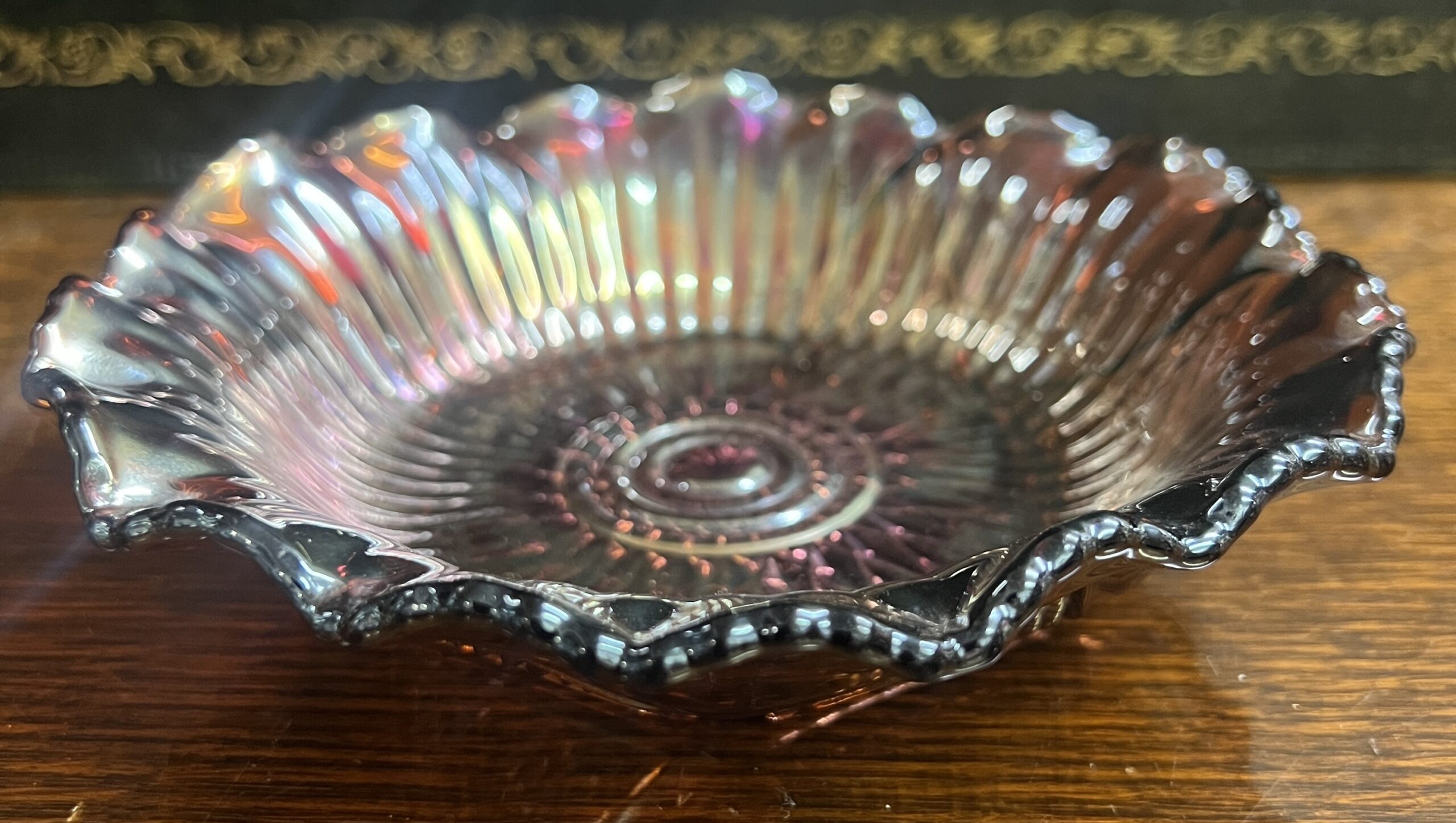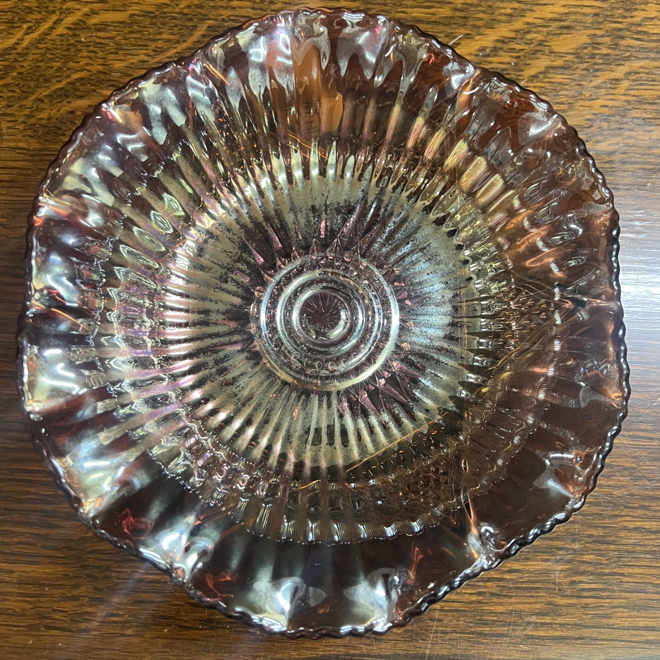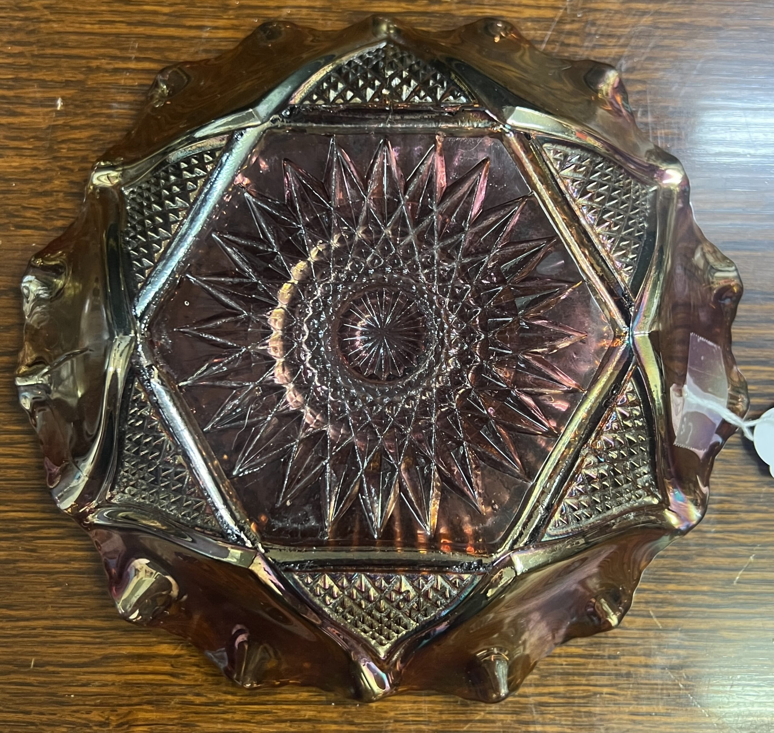 Amethyst carnival glass small bowl Hobstar and cut triangles 175 x 45