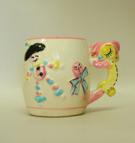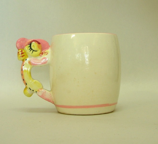 Japanese hand painted children’s cup, A.F. There is a small bit of staining on the base around were the handle connects.