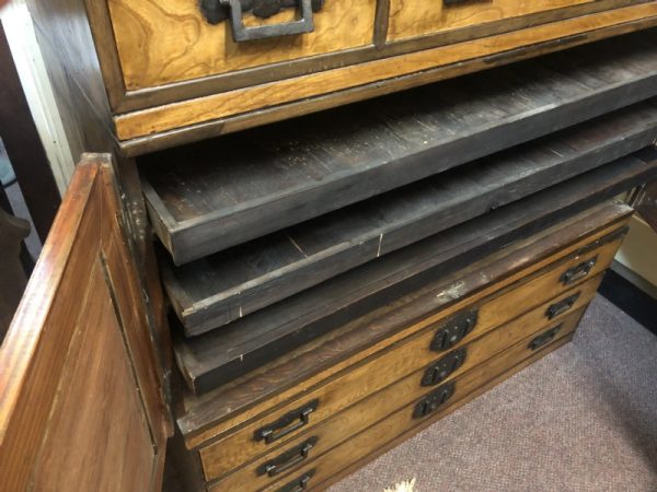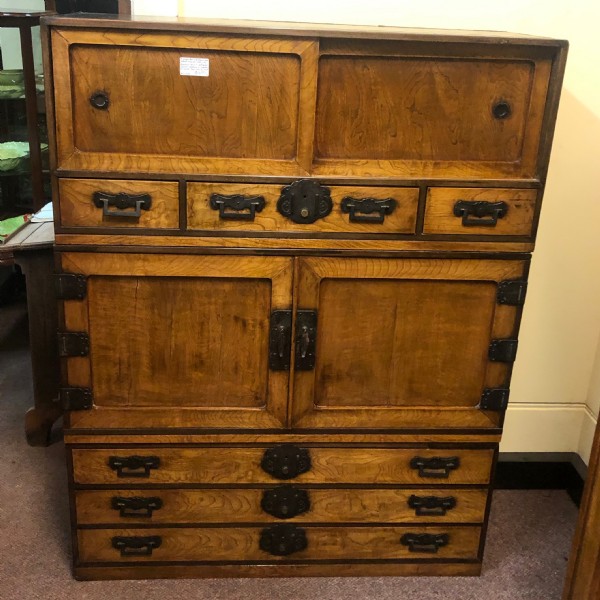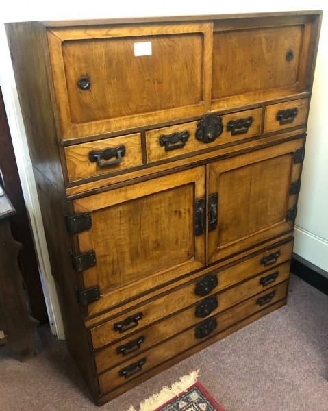 A Korean Cherry and Zelkova wood Cabinet made in the Japanese Tansu style/ influence during Japanese occupation of Korea 1910 to 1945 It may have been taken to Korea by the Japanese