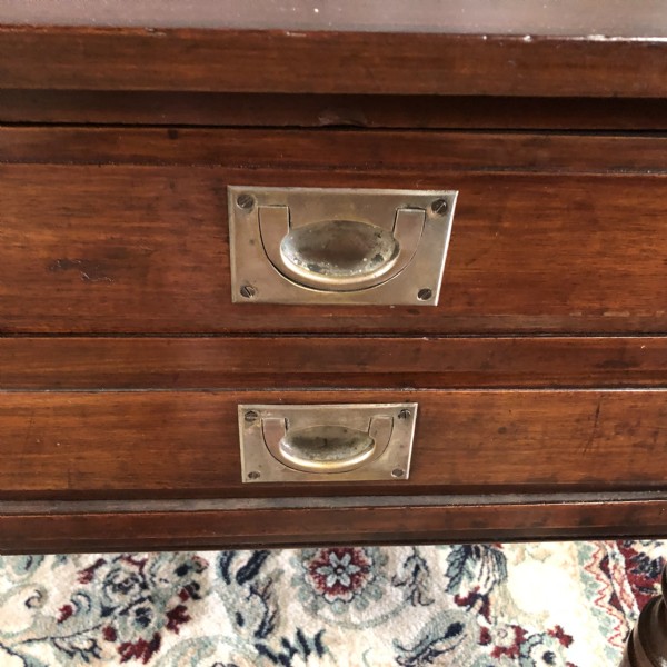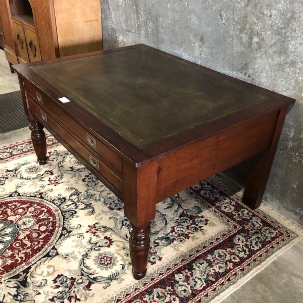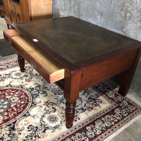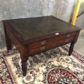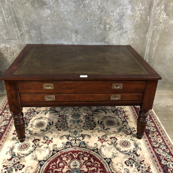 A West Australian Jarrah two drawer map desk raised on turned legs and having a tooled leather top