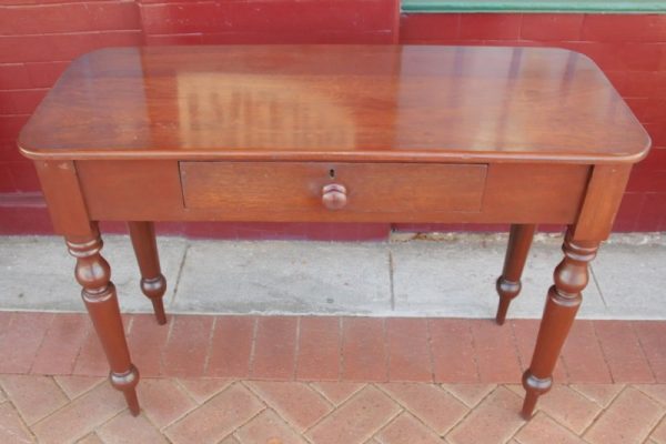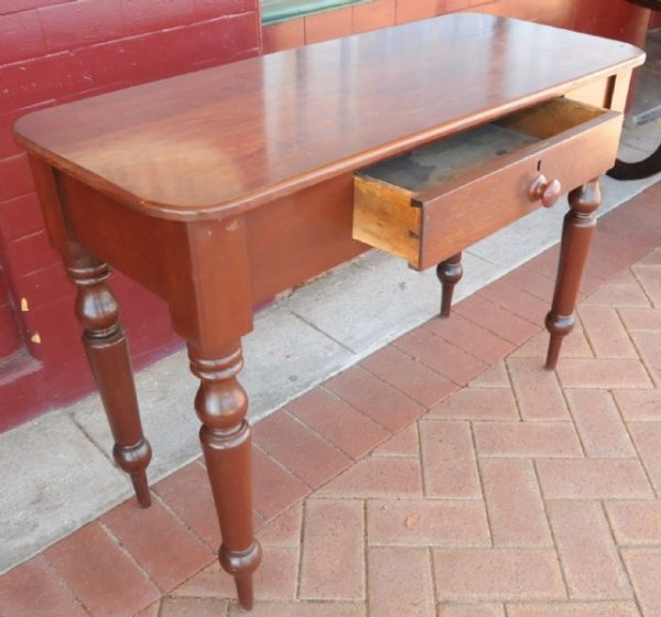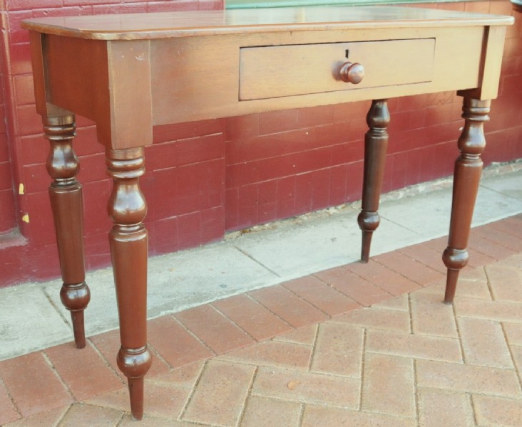 A late 19th century Jarrah side tale with single drawer constructed with hand cut dovetail joints, and having turned knobs and legs. A rare piece of Australiana.