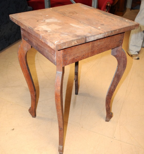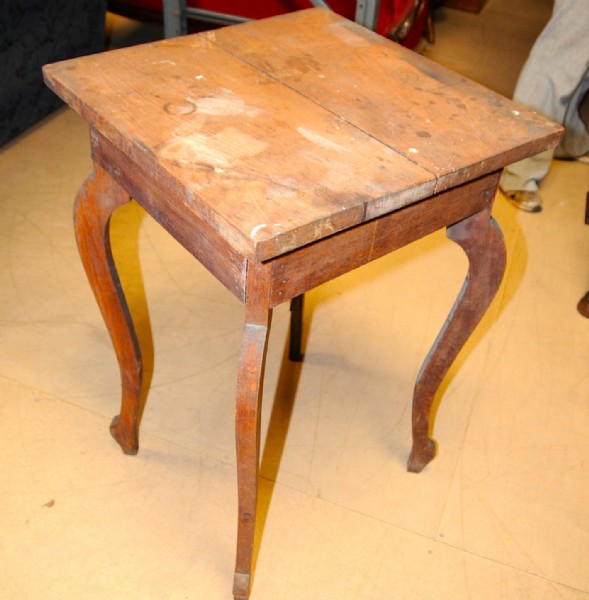 A square Jarrah occasional table raised on shaped out swept legs.