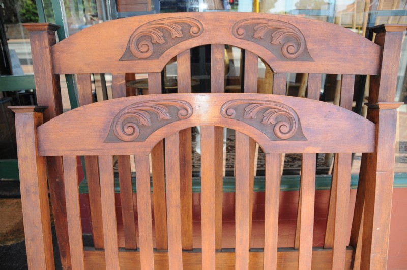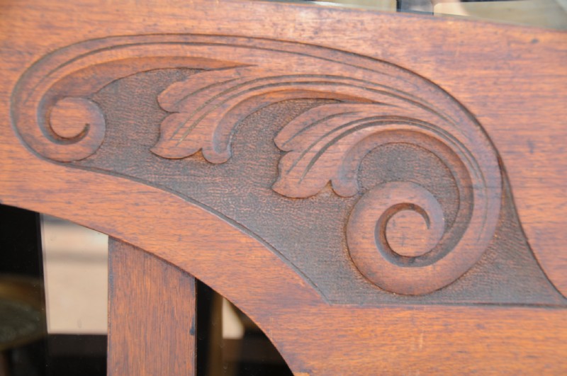 An Australiana king single bed constructed from Black wood. The head and foot are slatted with square sectioned posts each terminating with a cap. The top rails are arched and have scrolling carved opposing acanthus leaf design. We have the side rails, the restored price includes slats. Size: – 148cm high at the head and 127cm at the foot x 122cm wide.