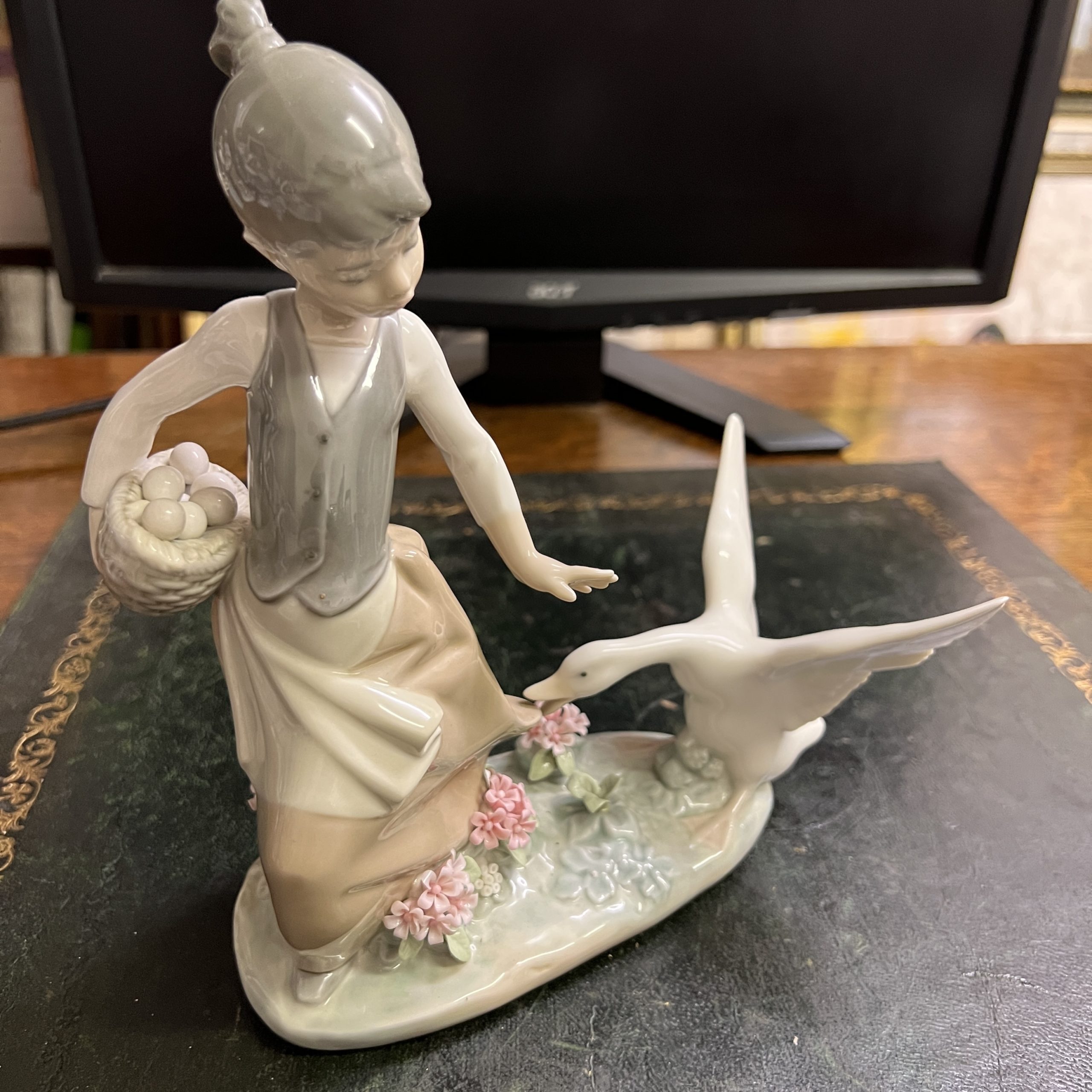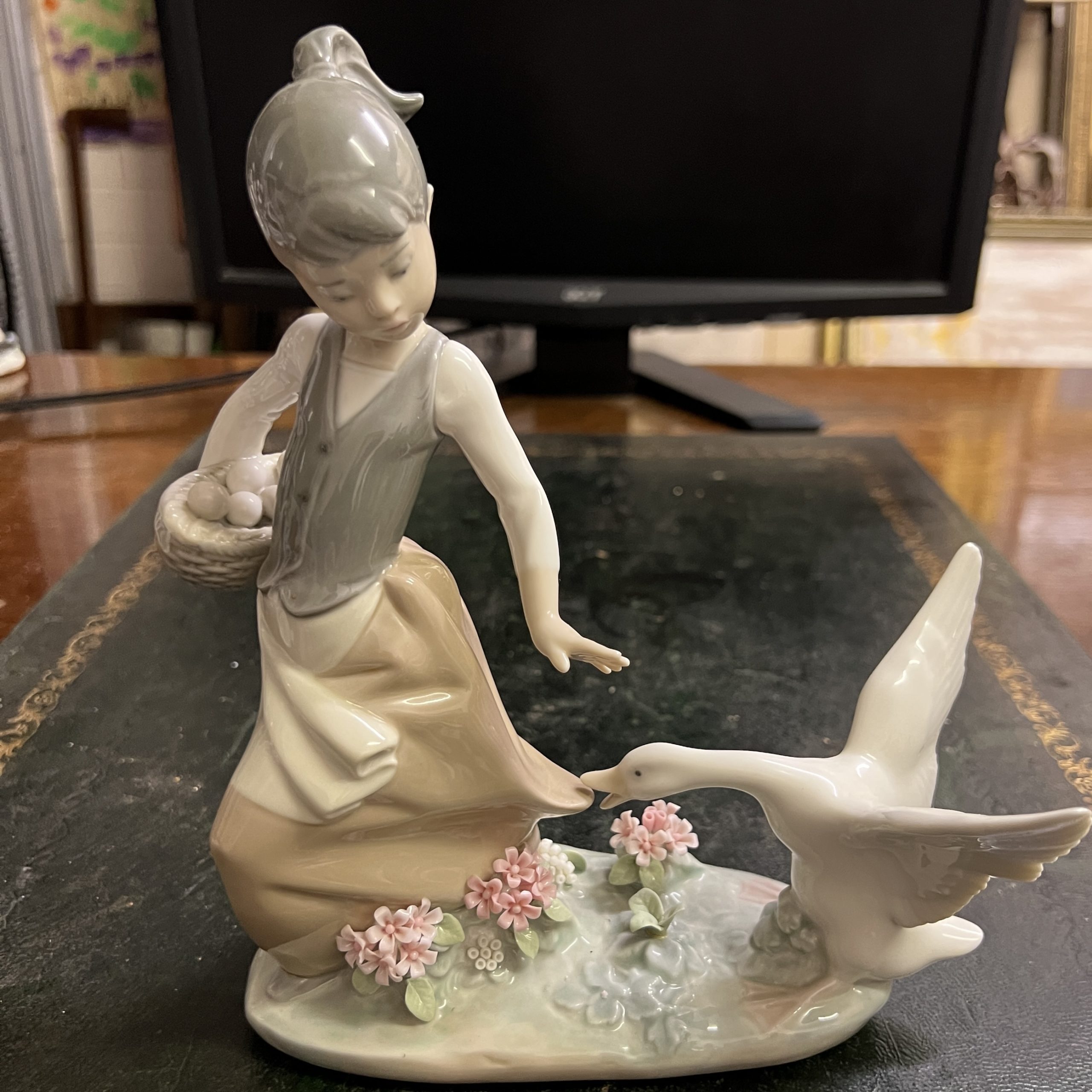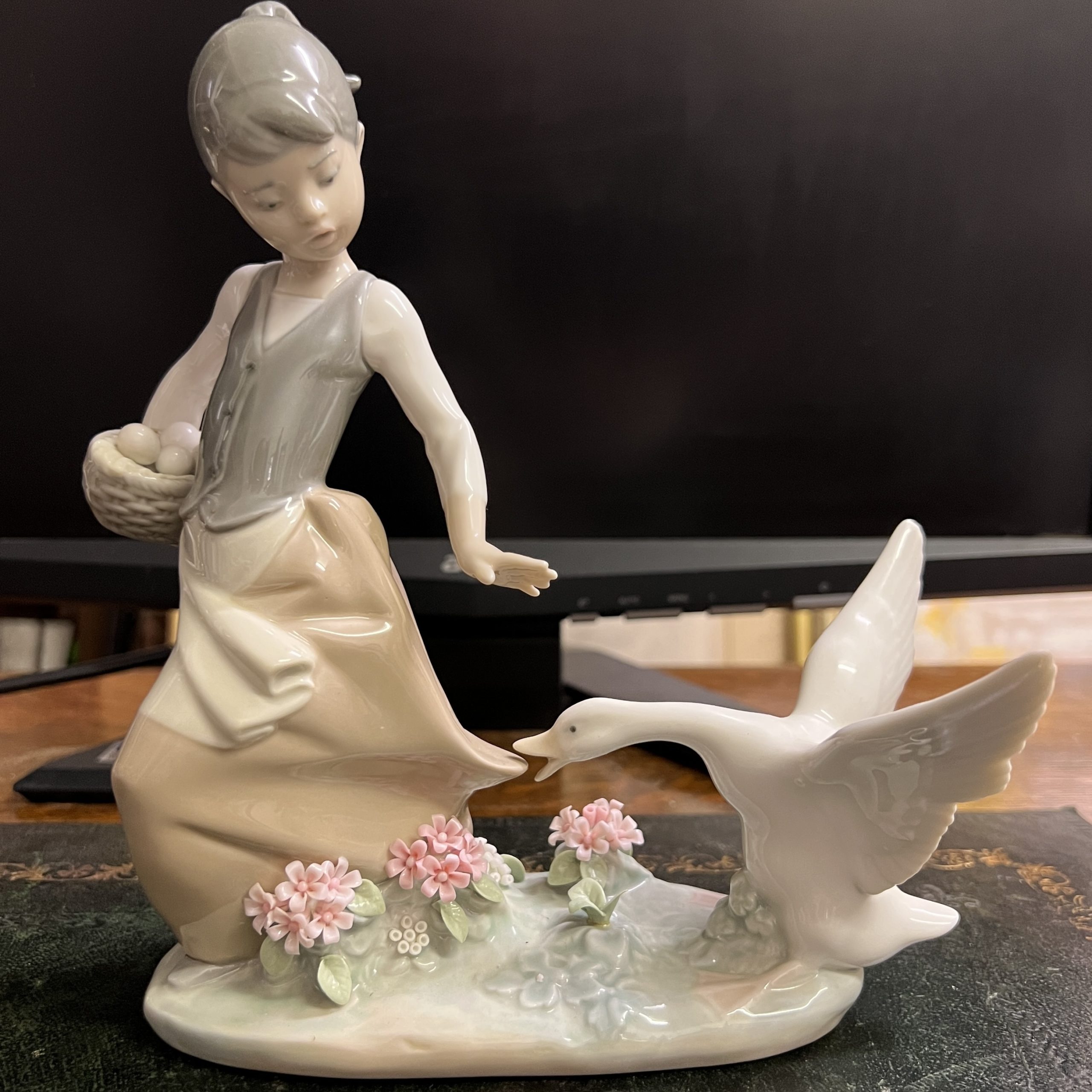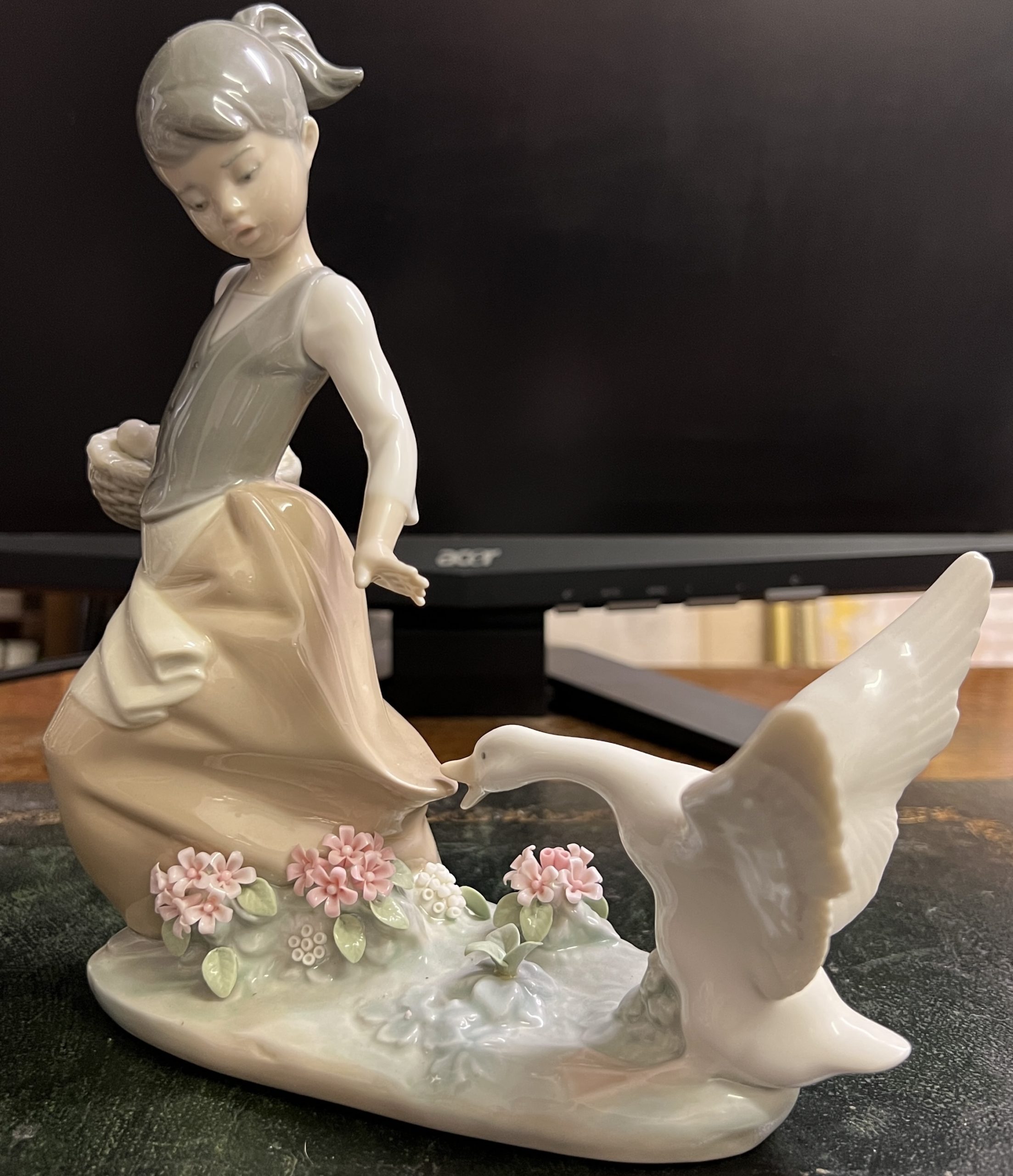 Lladro girl chased by an “Aggressive Goose” made in Spain