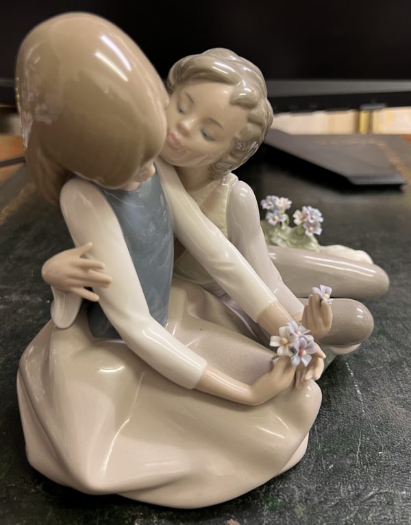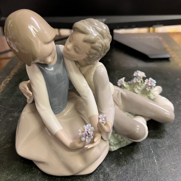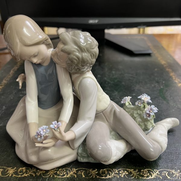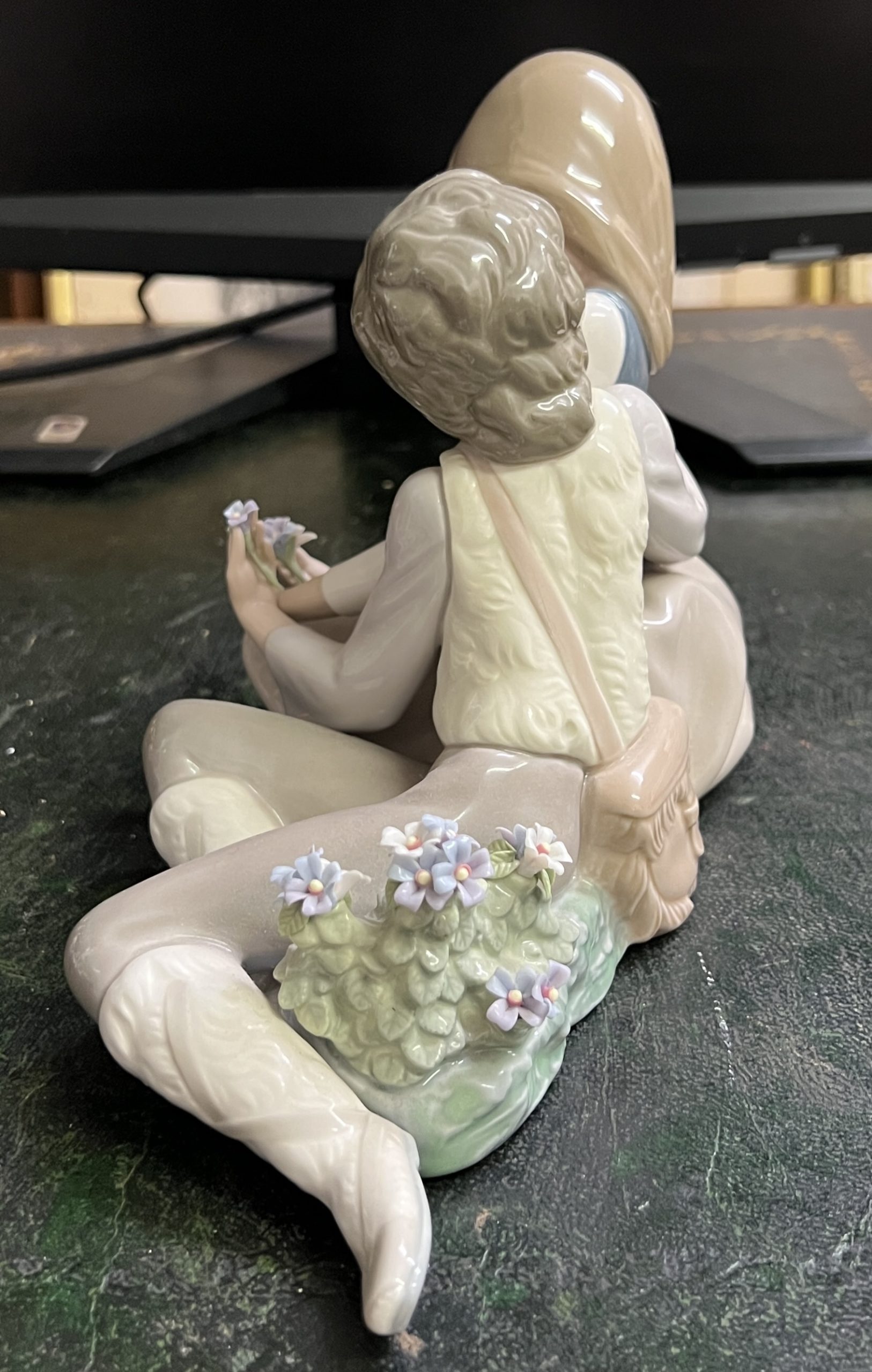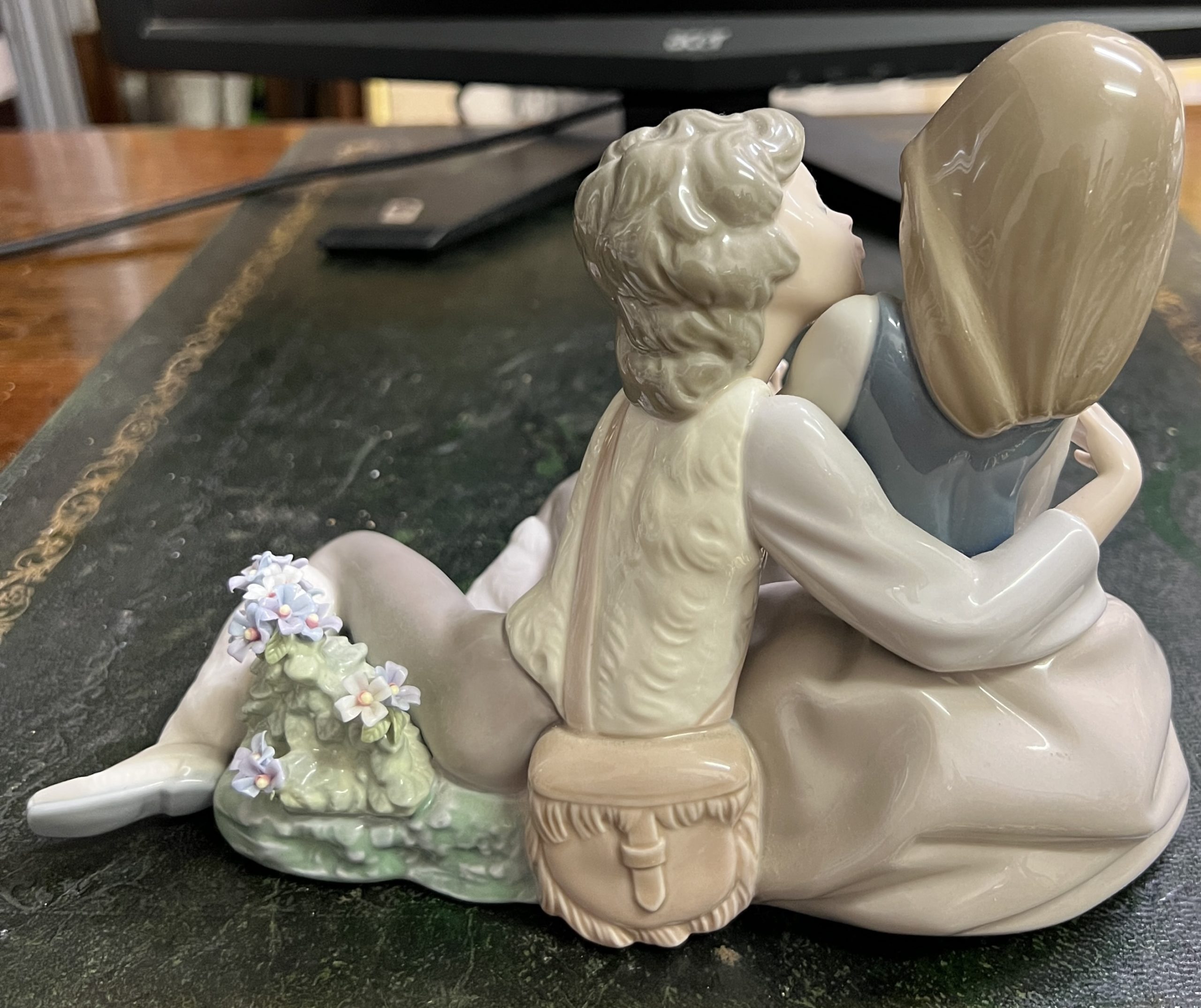 Lladro courting boy with flowers kissing a shy girl made in Spain