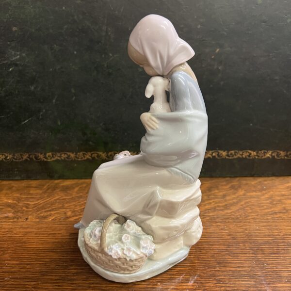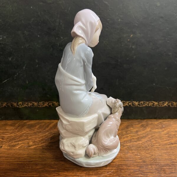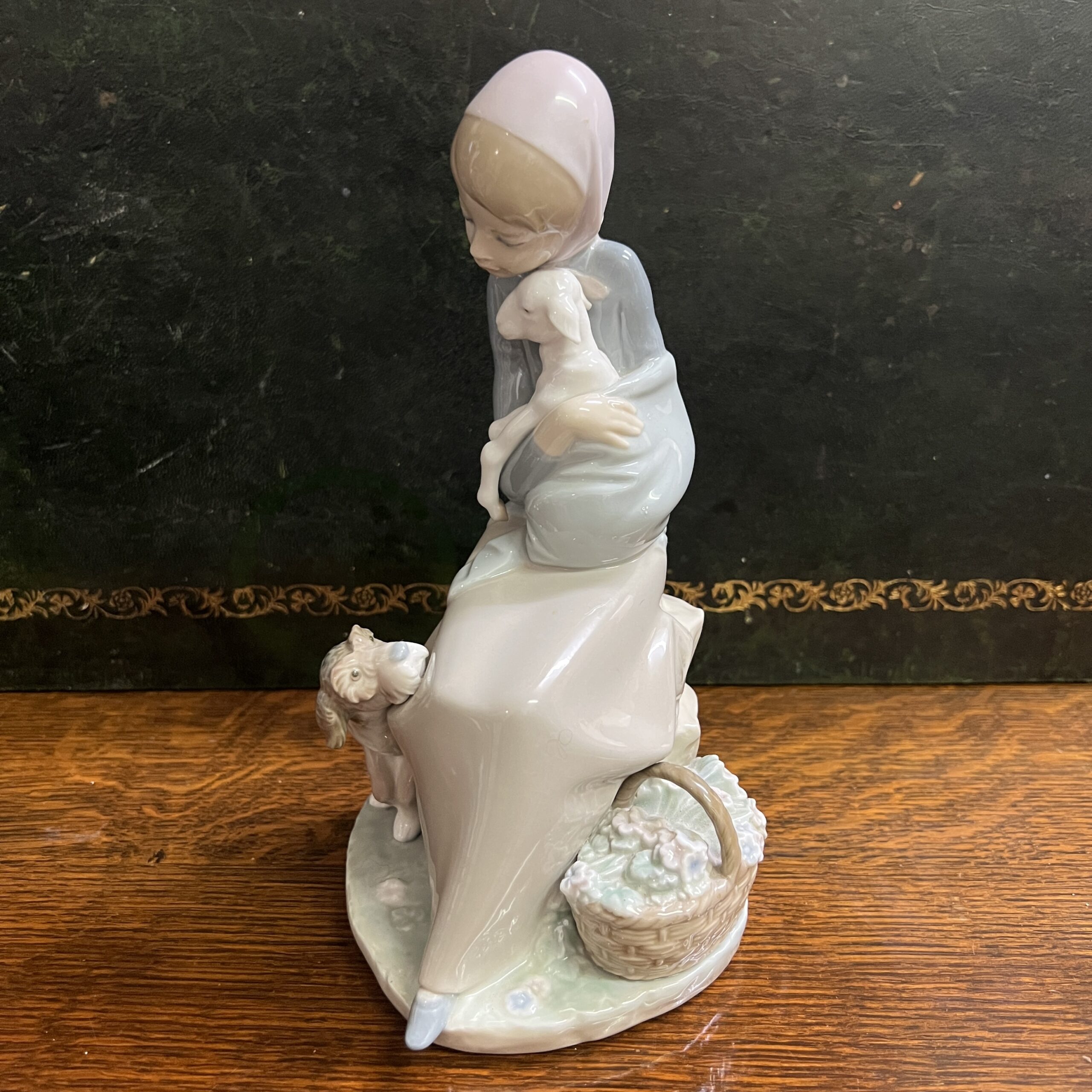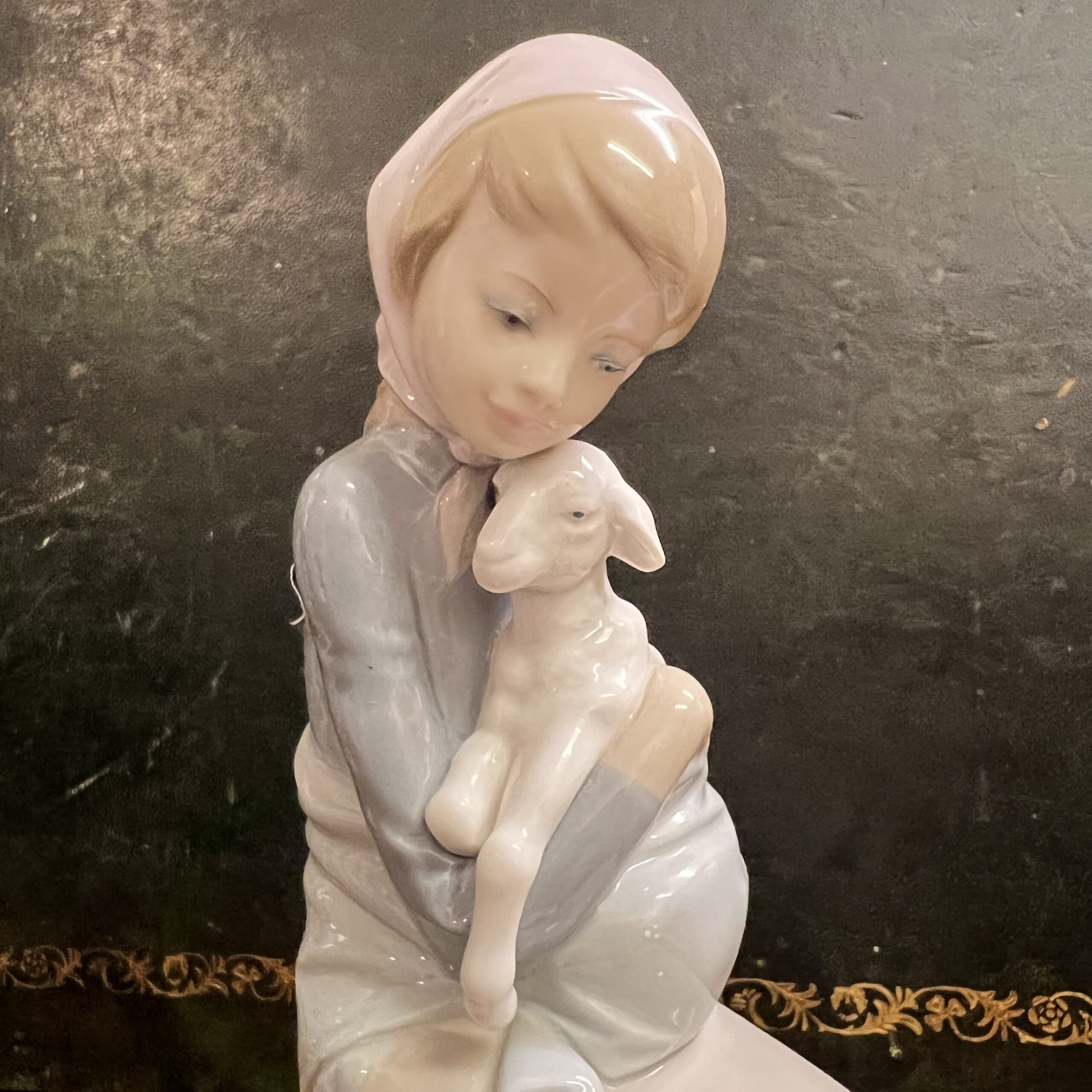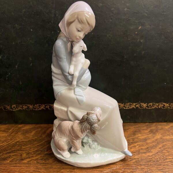 Lladro devotion jealousy figurine girl with lamb and dog 22cm