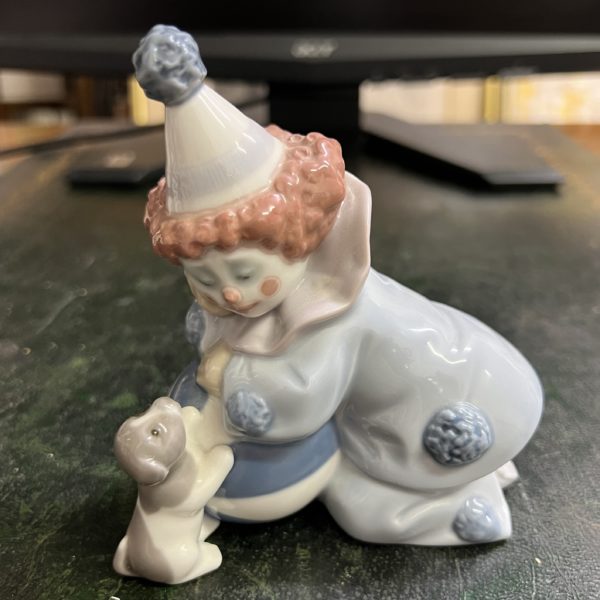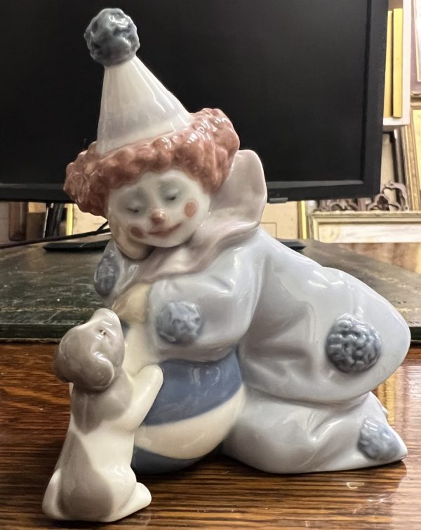 Lladro Pierrot Clown with puppy figurine, made in Spain