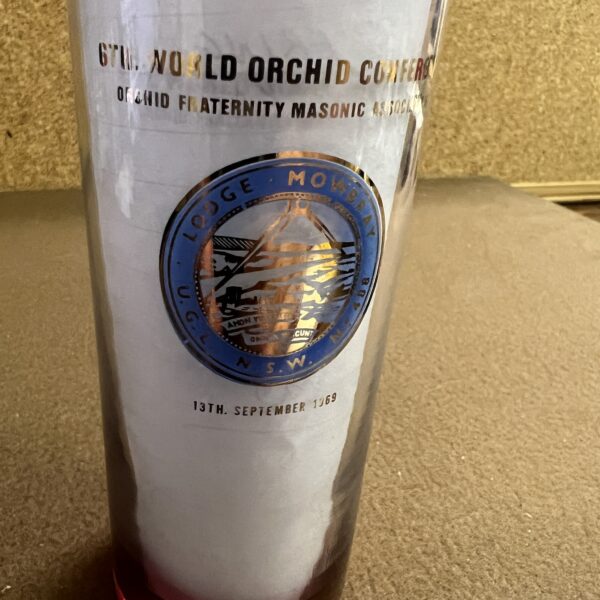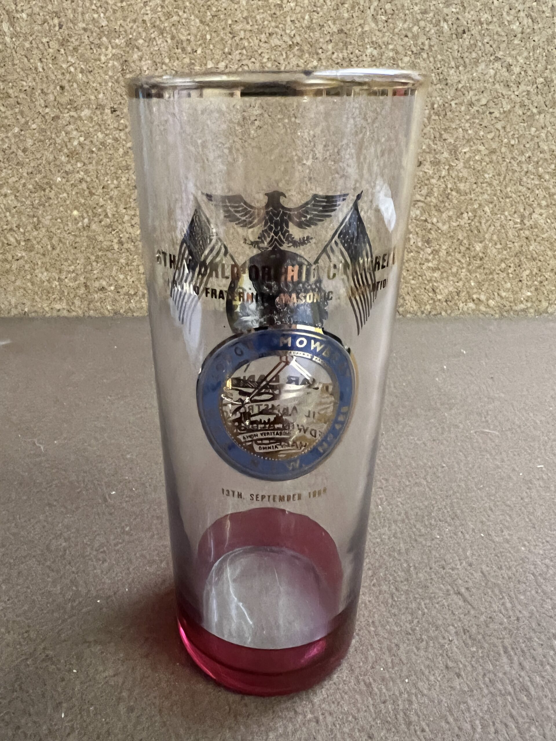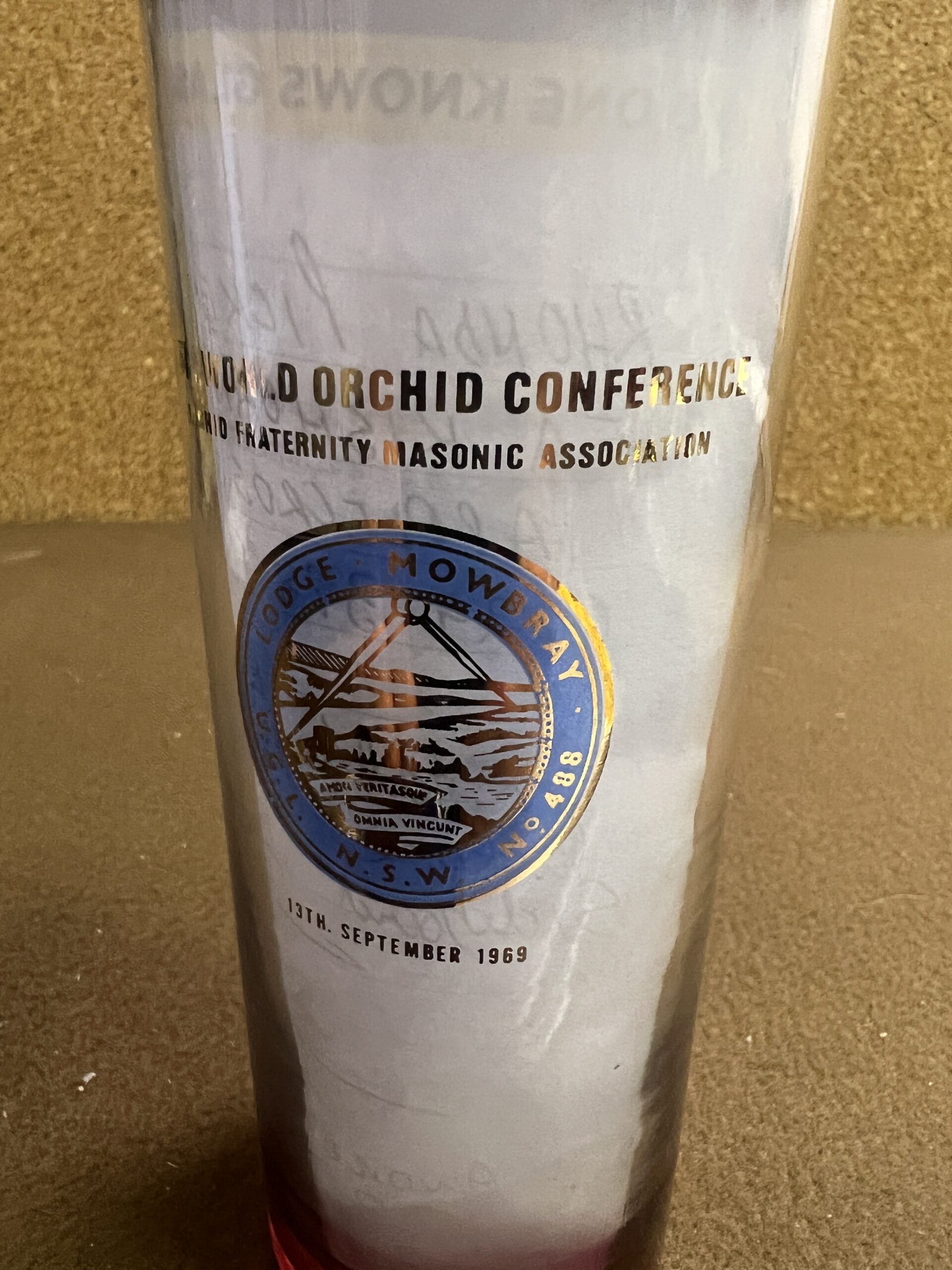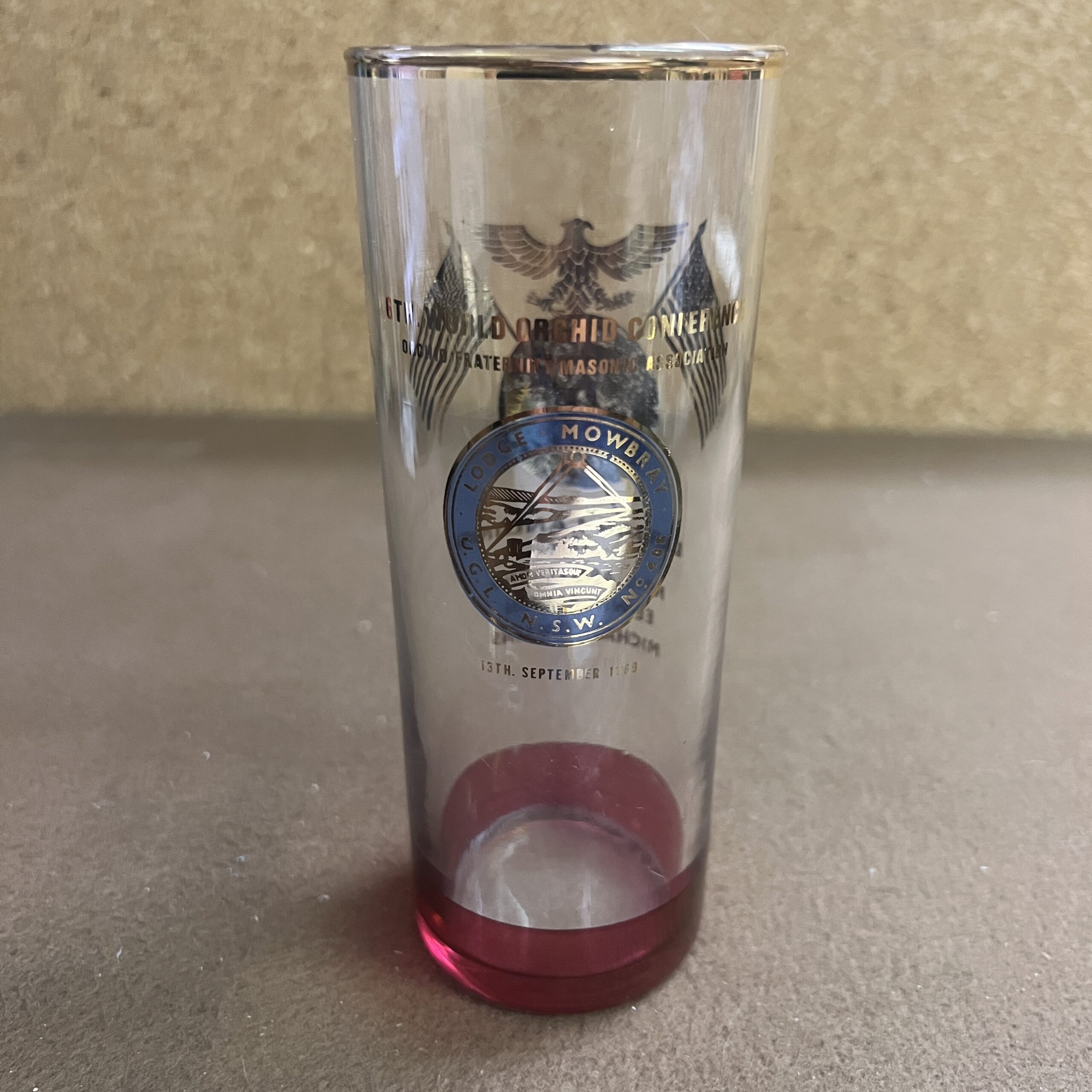 Lunar Landing 1969 drinking glass 6th world orchid conference orchid fraternity Masonic Association