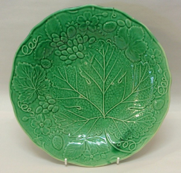 Majolica Green Glazed “Strawberry” Cabinet Plate