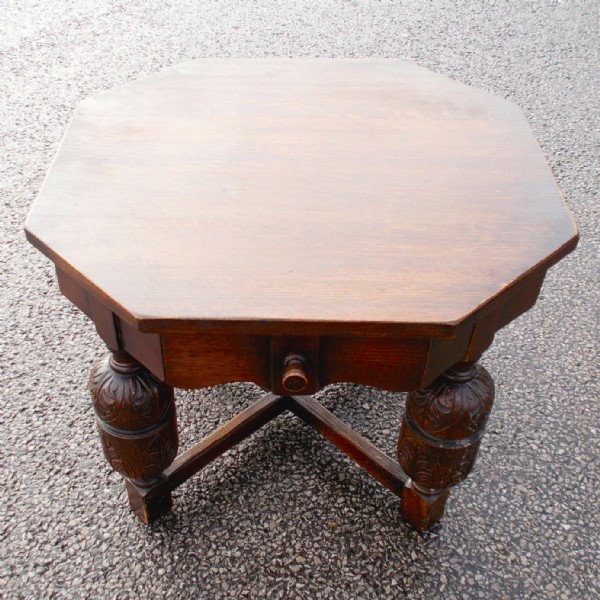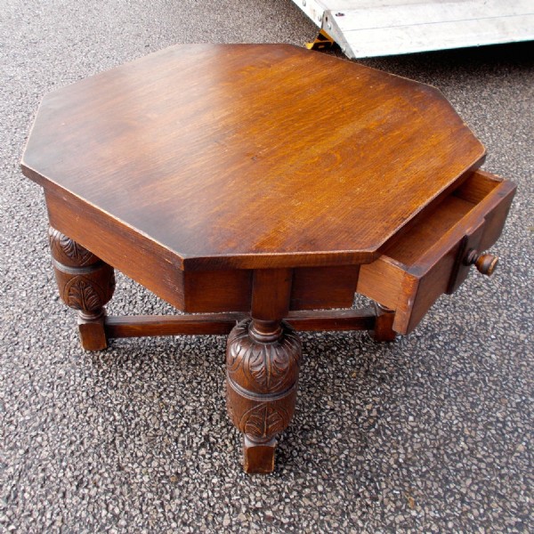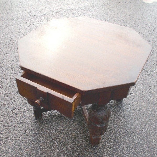 Oak octagonal coffee table with drawer raised on bulbous legs