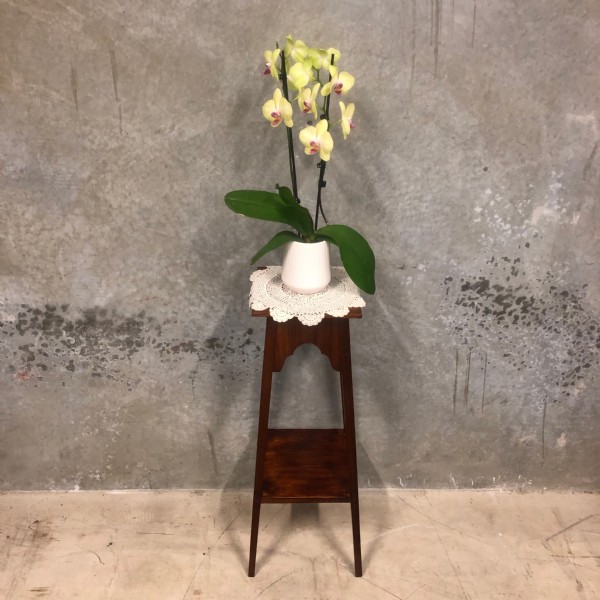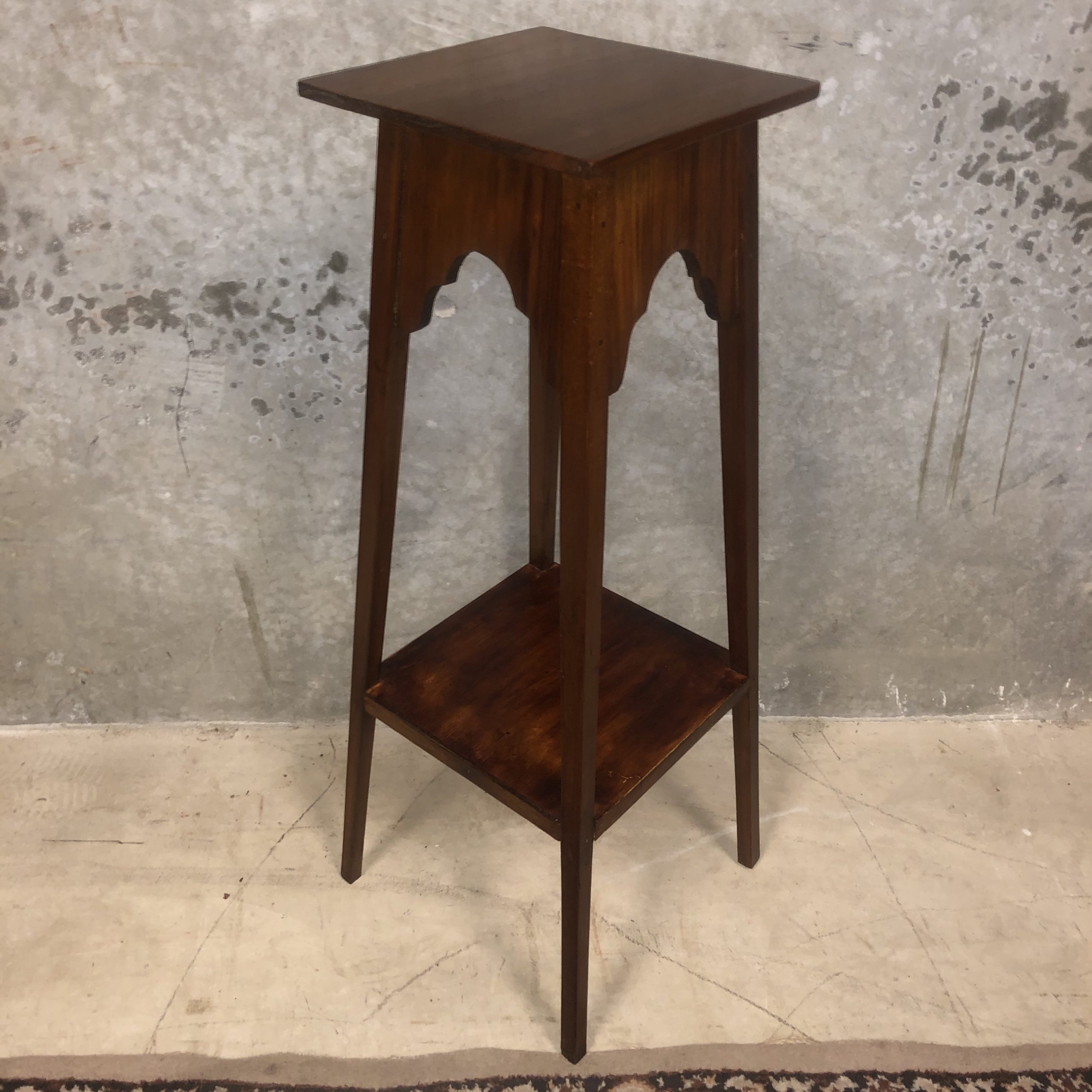 A square two tier splayed leg Walnut plant stand