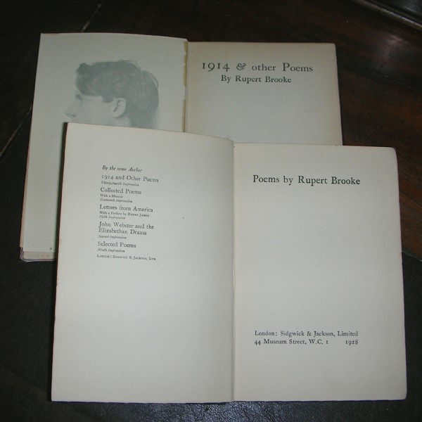 A Pair of Poem books by Rupert Brooke the first 1914 and other poems London Sidgwick and Jackson Ltd and a second Poem book by Rupert Brooke London Sidgwick and Jackson Ltd 1928.