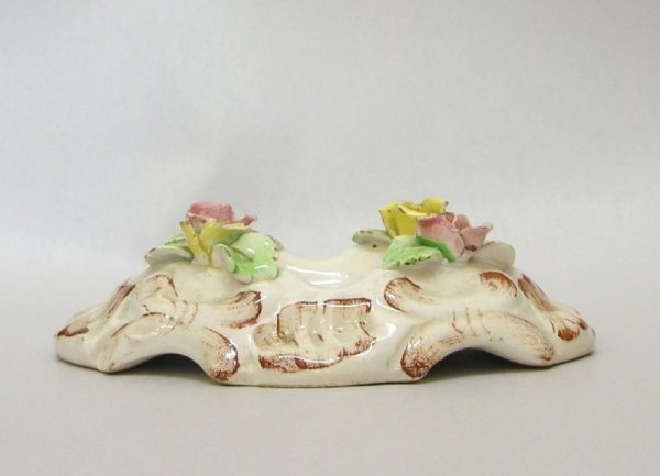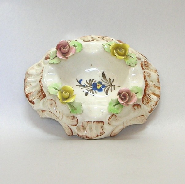 Porcelain hand painted trinket dish decorated with hand crafted roses, A.F.
