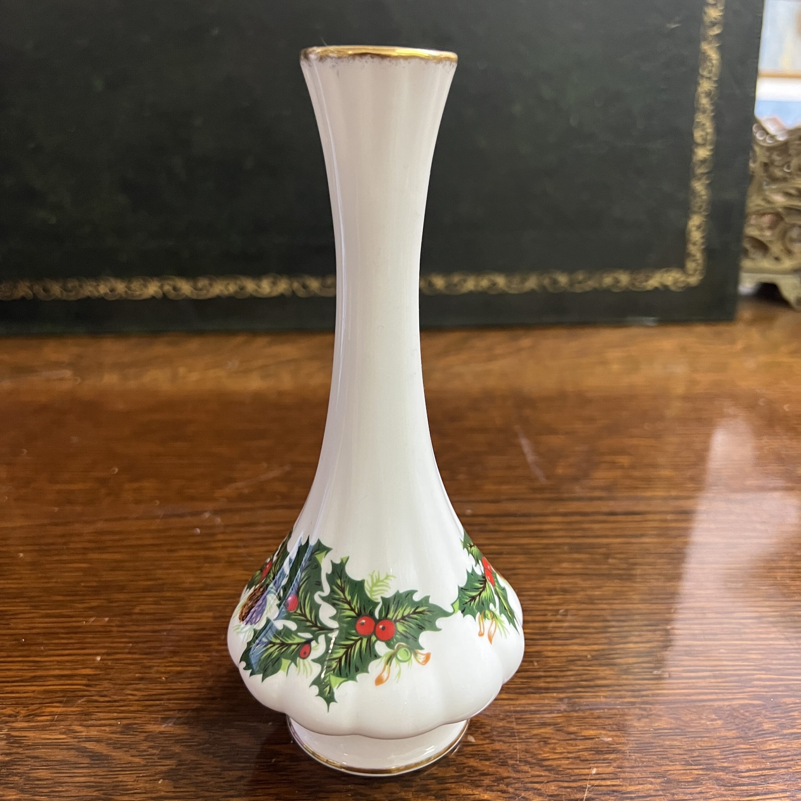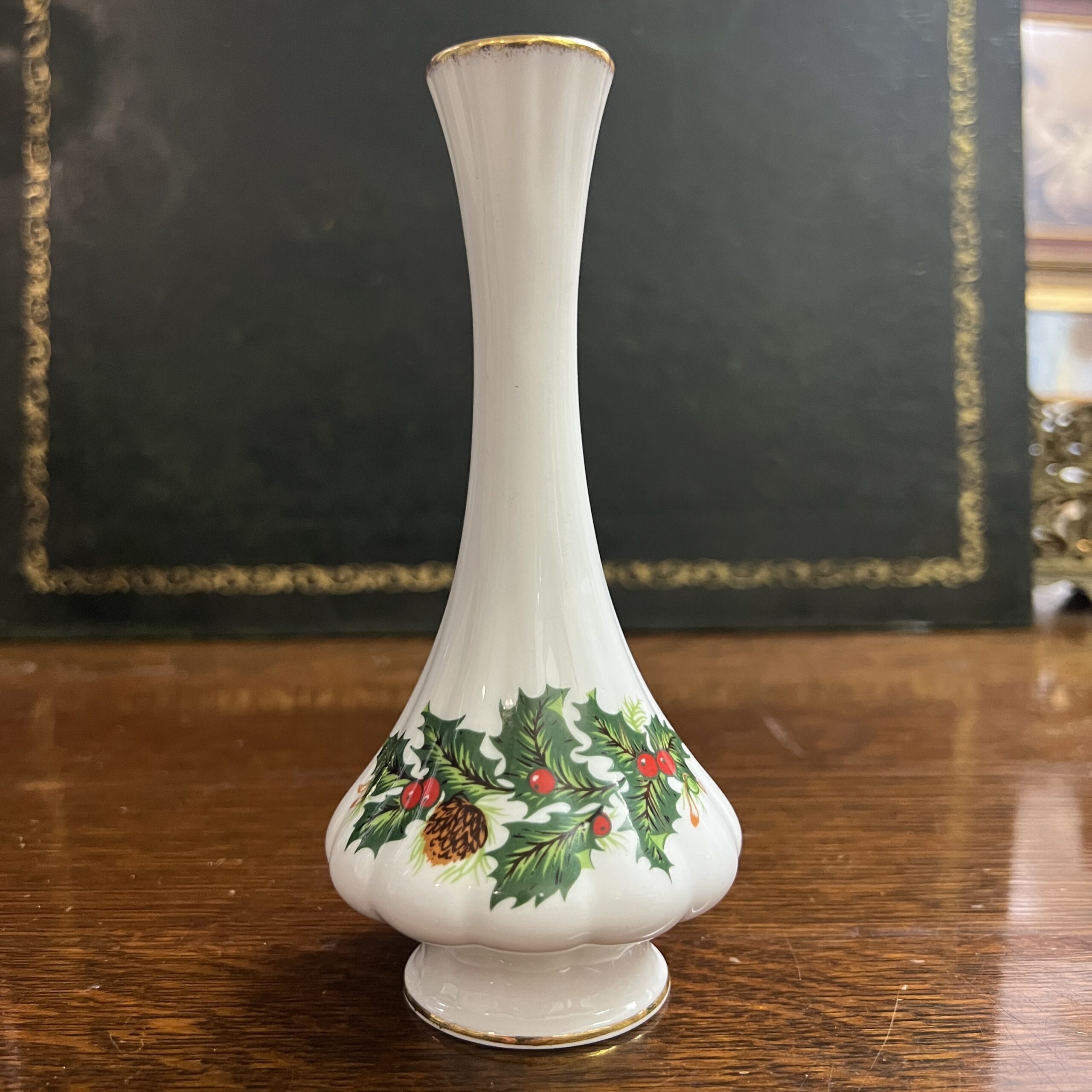 A small Queens Rosina China Co Ltd Yuletide Holly decoration vase
