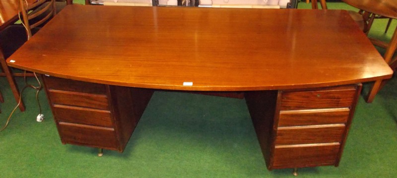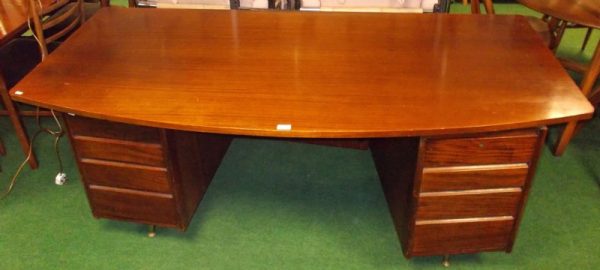 Retro Danish hardwood twin pedestal desk.