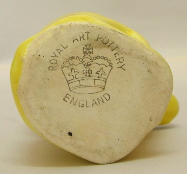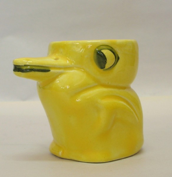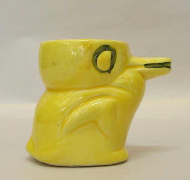 Royal Art Pottery England hand painted yellow and black kookabarra egg cup.