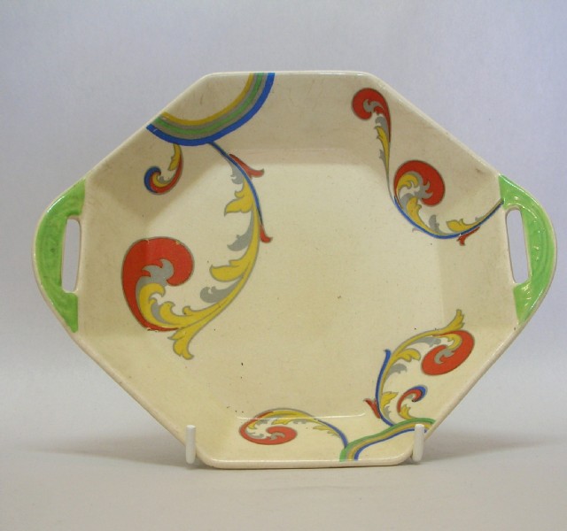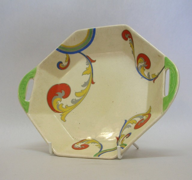 Royal Doulton Art Deco Hand Coloured “Syren” Pattern Two Handle Dish.