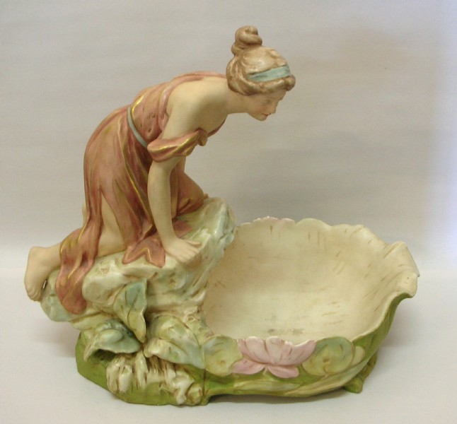 Royal Dux Art Nouveau Water Maiden Shell Bowl