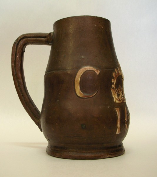 Early 20th Century Copy of 17th Century Salt Glazed Stoneware Tankard With Signature & Embossed Emblem To Base.