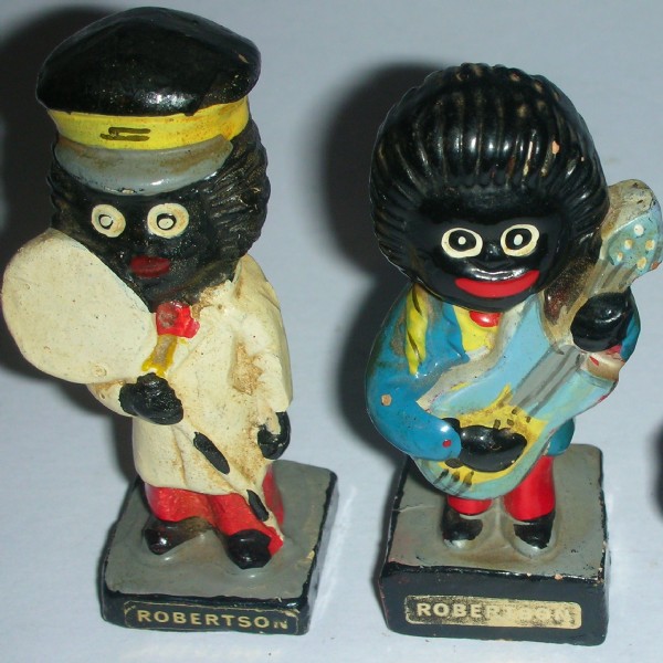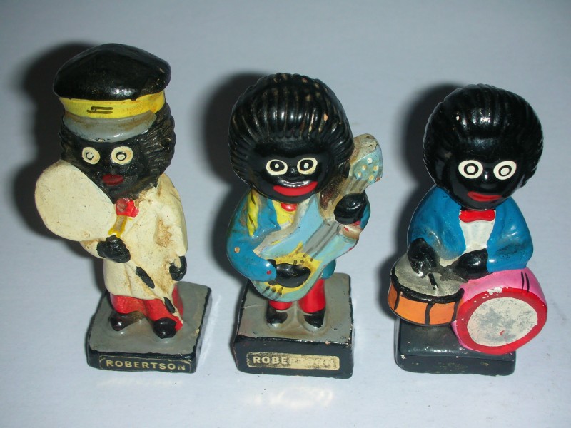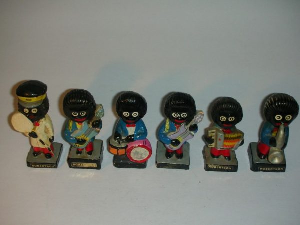 A set of six hand painted Robinson jam gollywog figures all members of the band
