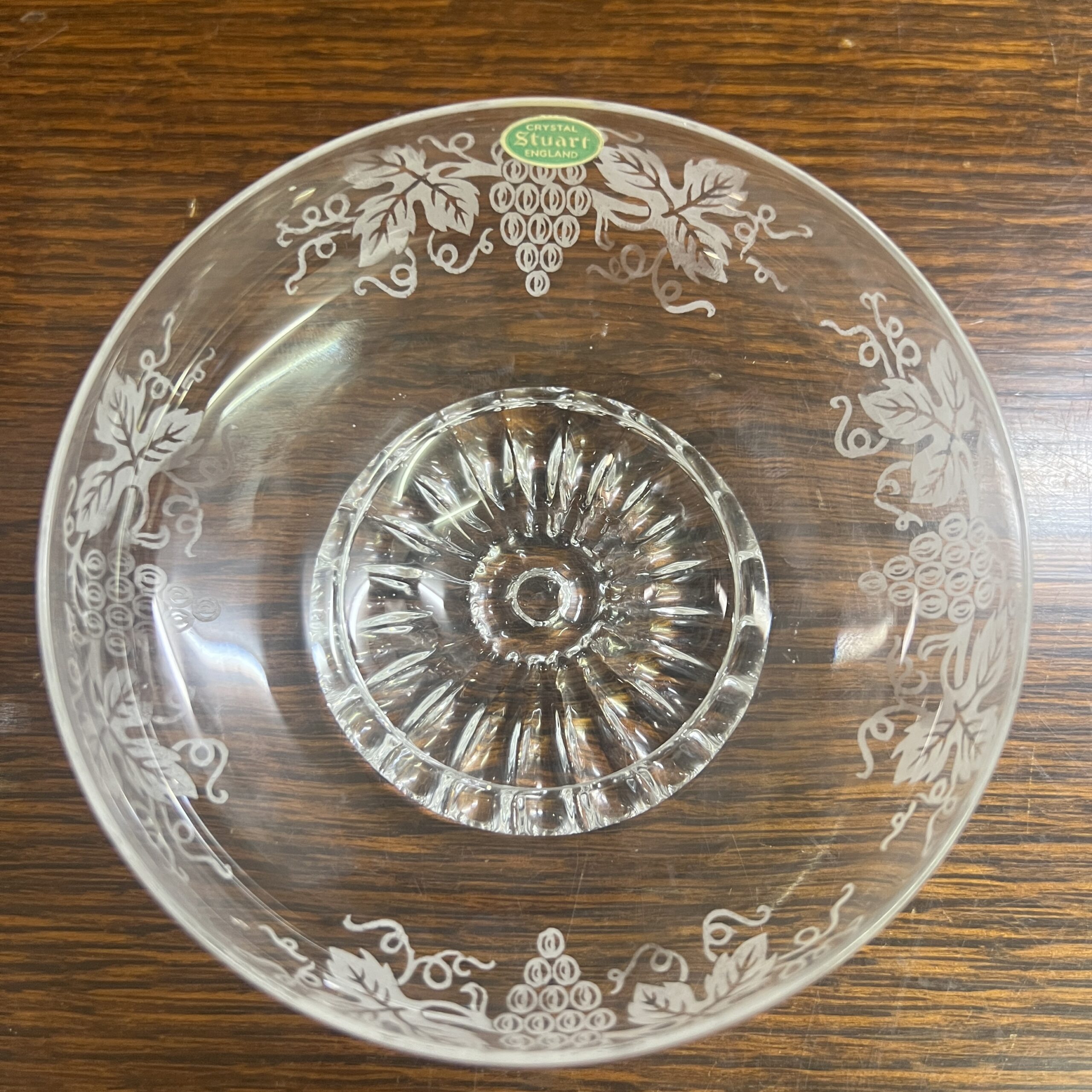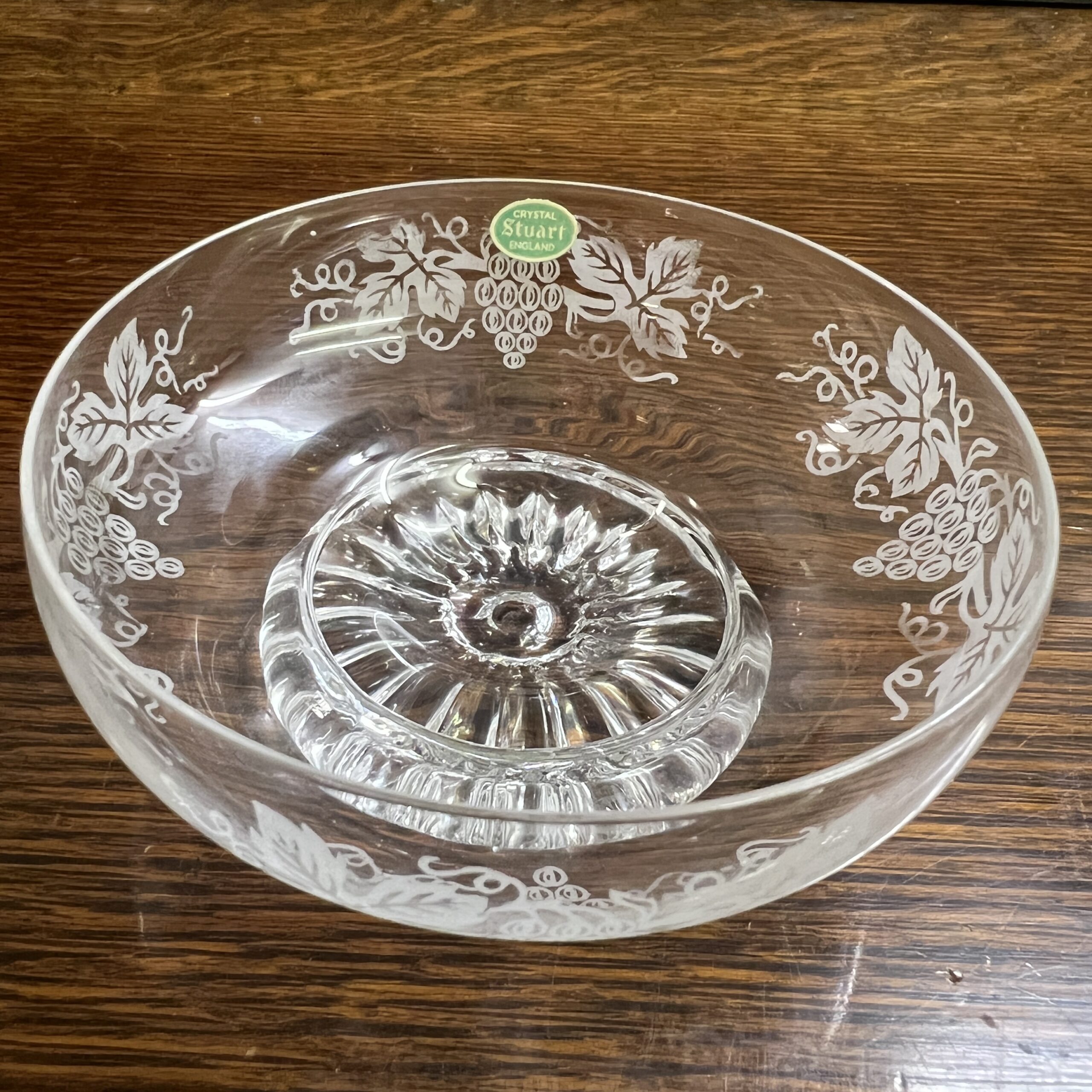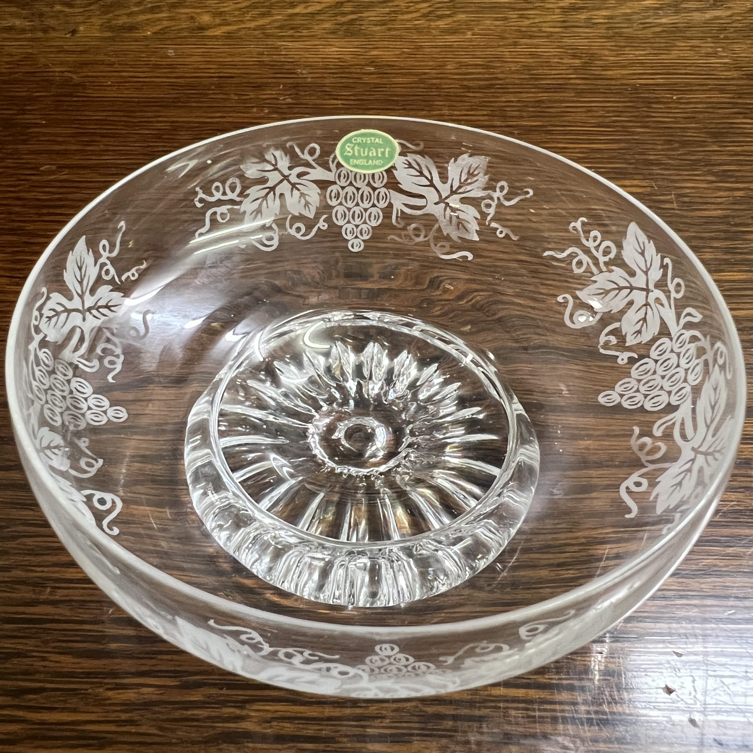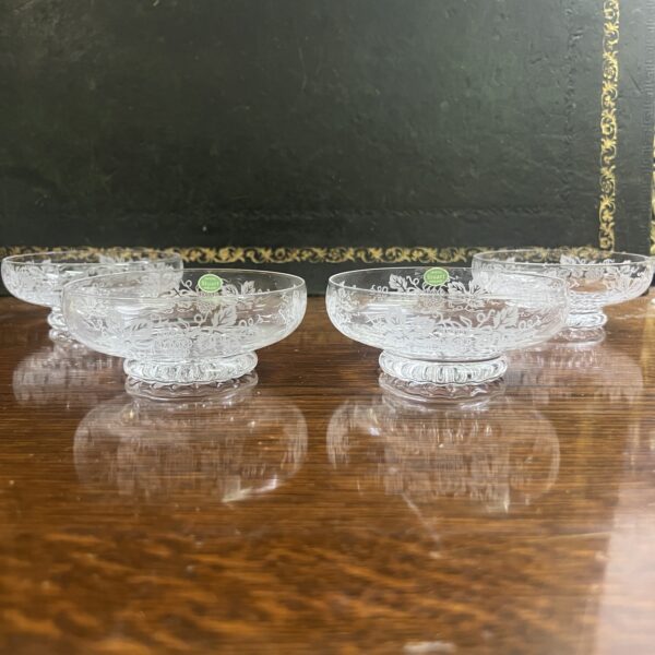 4 Stuart crystal sweet bowls grape vine acid etched 105mm diameter